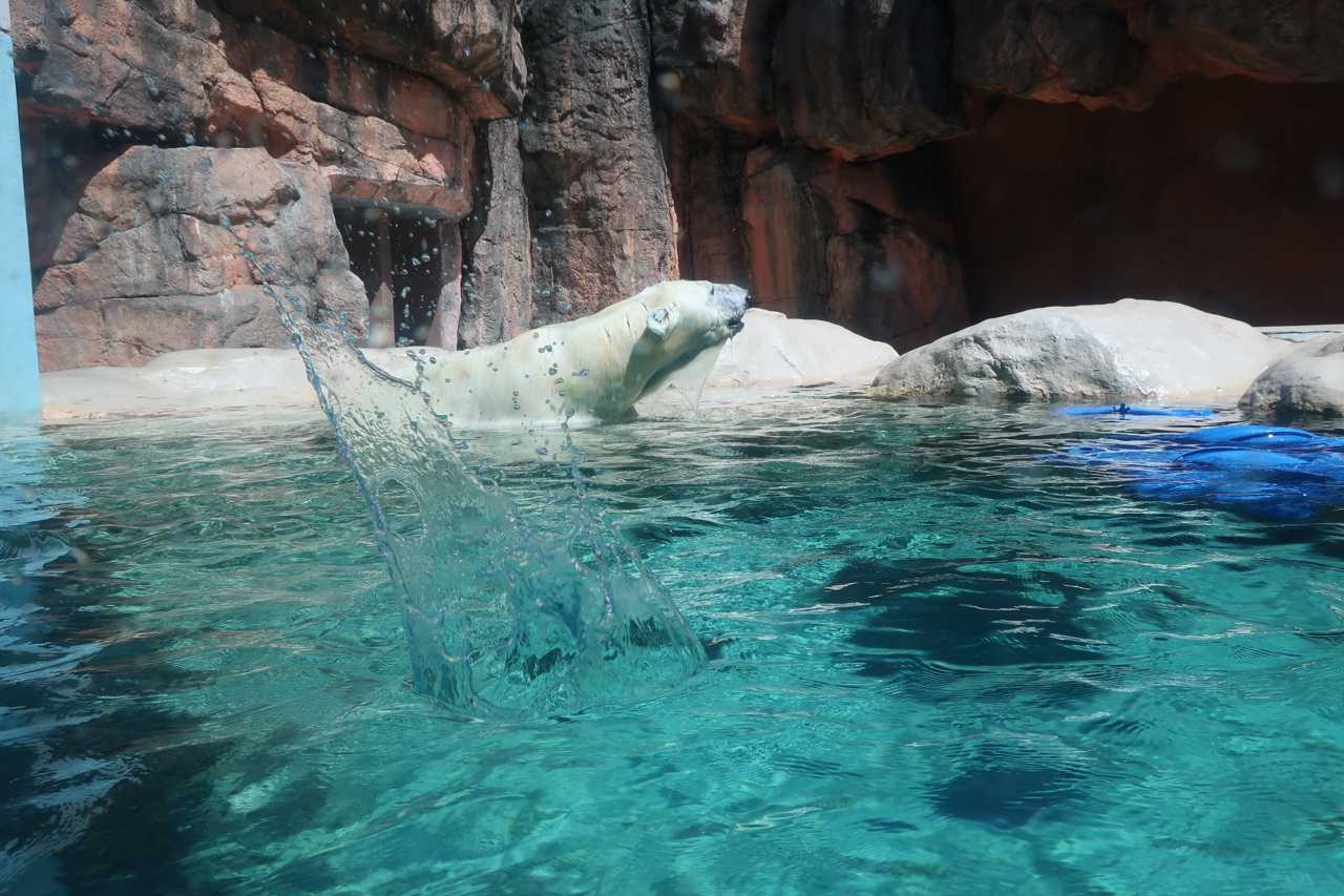 日本平動物園 ホッキョクグマのバニラご飯タイム バニラが上を見上げてソワソワしています。 ![]() バニラの説明 ![]() こちらがバニラ ![]() 上に飼育員さんがバケツを持って現れました。 ![]() 餌が投げ込まれました。 ![]() バニラが探しに行きます。 ![]() 見つけたみたいです。 ![]() 美味しそう! ![]() 次を投げるのを待っています。 ![]() 探しています。 ![]() ガラスを蹴ってターン!足が大きい! ![]() お肉よりも野菜の方が好きみたいです。 ※画像などの無断使用転載禁止 お気に入りの記事を「いいね!」で応援しよう