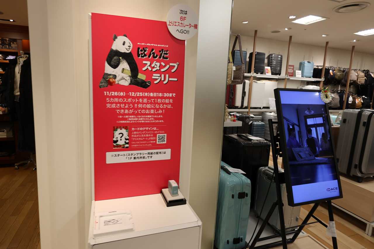 上野松坂屋 パンダフルクリスマス開催スタンプラリー 毎年恒例のぱんだスタンプラリー、今年もチャレンジ ![]() 今回は2Fのスタンプはヘリテイジ前に移動 ![]() 5F旅行用品店横 ![]() 6F上りエスカレーター横 ![]() あと、一つで完成 ![]() GOAL ![]() 完成した絵柄は自分で確認してください。 ※画像などの無断使用転載禁止 お気に入りの記事を「いいね!」で応援しよう