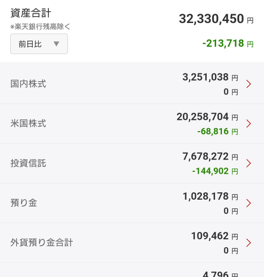 今週末の資産状況です。