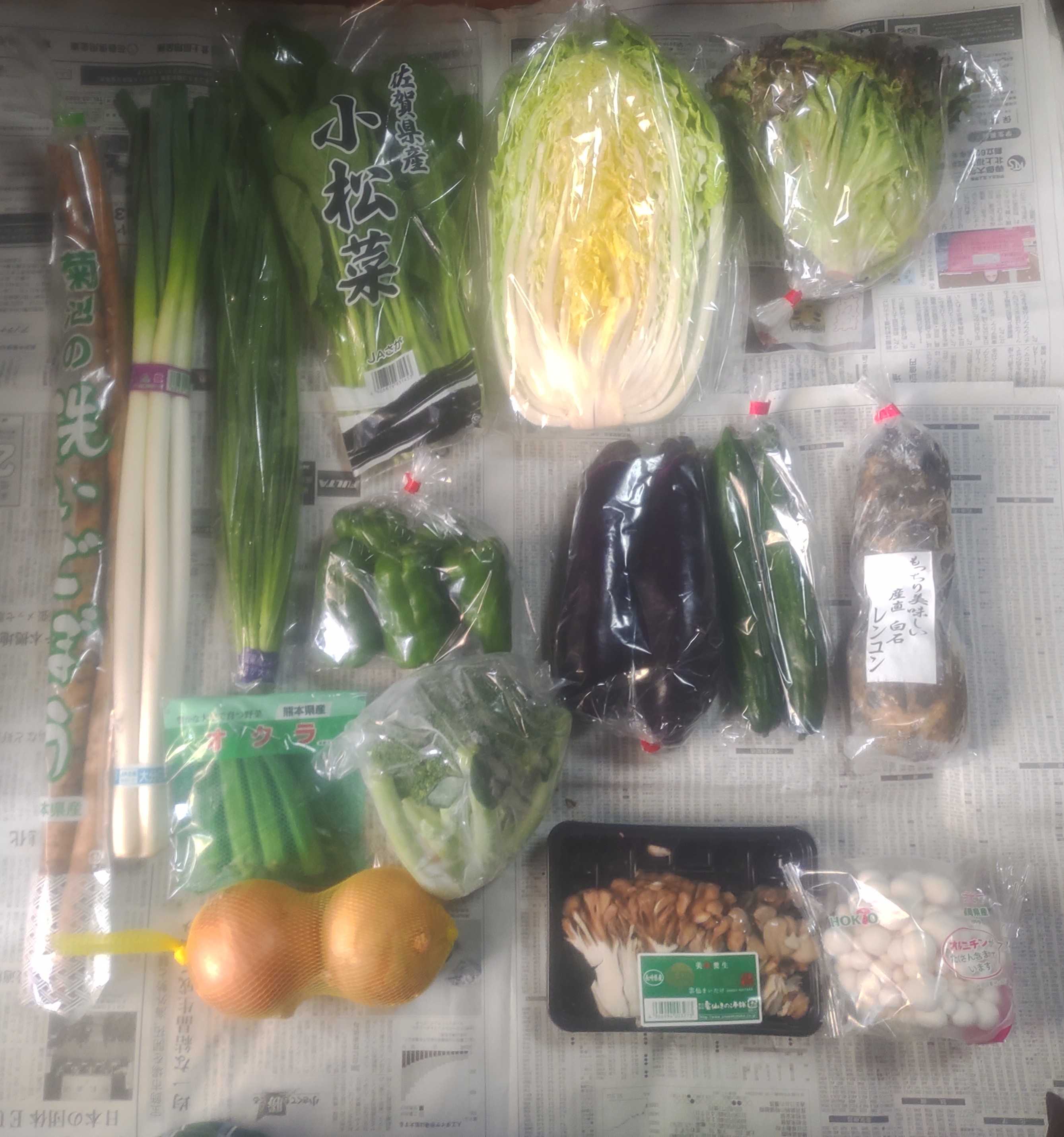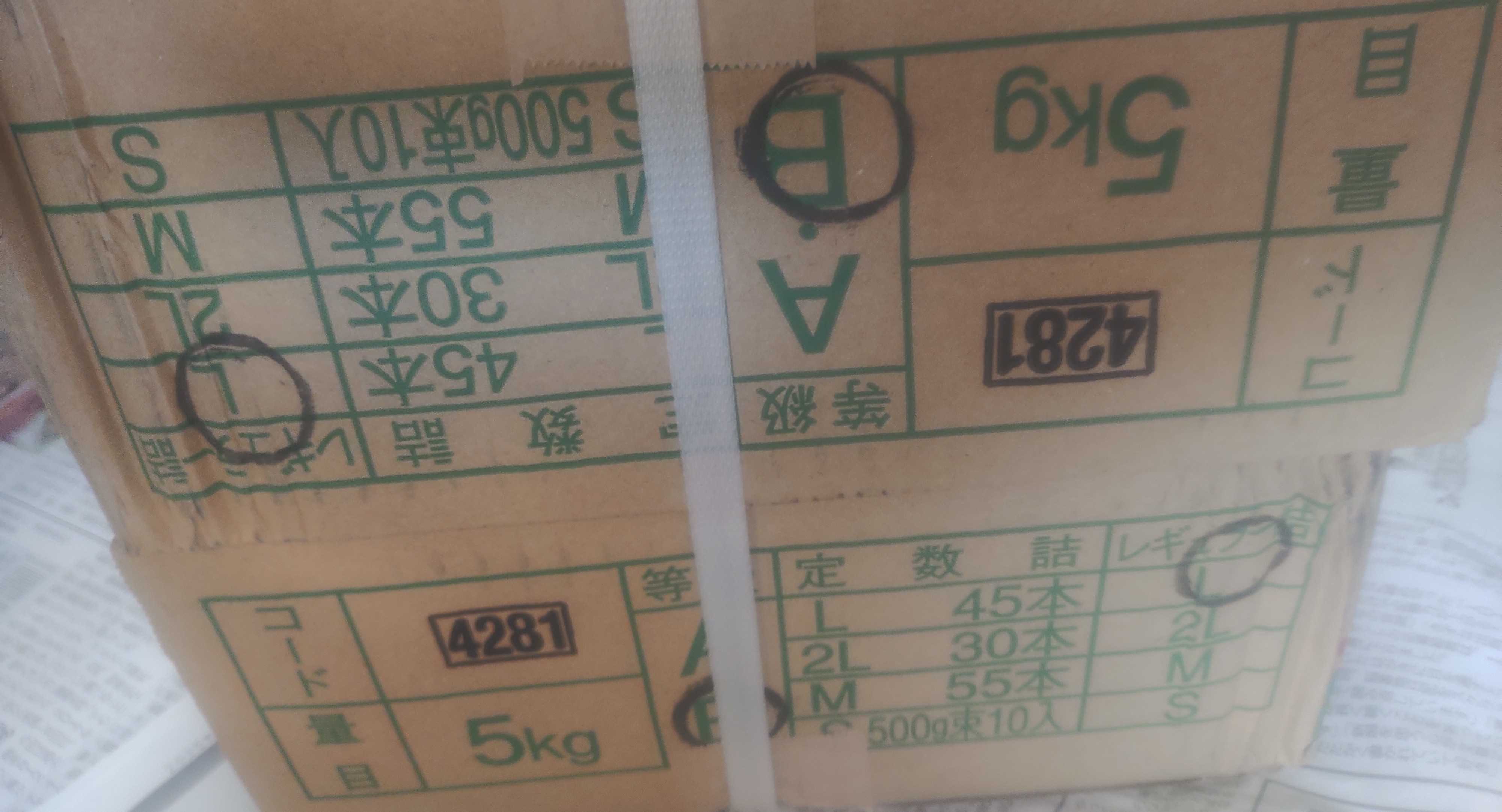 玉ねぎやジャガイモならともかく キャベツや長ねぎを10kg買いする人はそういないと思うから 参考にはならないかもしれませんが(^^; まずキャベツ。 じゃじゃん! ![]() 大きいのが8個。 ![]() B5ノートと大きさ比較。 ![]() 一番外側もみずみずしくて捨てずに食べました。 甘くて美味しいキャベツです(^^) 長ねぎはこの2、3年ほぼ毎年、何故か10月に買ってるんですがw (最初に買った時は1箱2480円だった…じわじわ値上がり;) 送料無料にするために2箱、10kg! 1箱45本くらいが目安らしい。 太いの細いの混ざっているのであくまで目安。 ![]() 空いてる方同士を内側にして重ねて送られてきます。 ![]() 1箱は40本。 ![]() もう1箱は44本でした。 ![]() 気兼ねなくジャンジャン使える~嬉しい( ノ∀`) 野菜セットは今日は(←今日は)hokiboxさんの。 はい! ![]() 内訳は ゴボウ×2本 長ネギ×4本(まとめ買いしたら買う野菜セット買う野菜セットに入ってくるようになったw) ニラ 小松菜 白菜 半分 サニーレタス ピーマン×5個 長ナス×2本 キュウリ×2本 レンコン オクラ×8本 ブロッコリー 舞茸 ブナピー 玉ねぎ×2個 でした。 安定の内容で満足。 さて、10月第1回目のマラソンもそろそろ終わりが近づいてきましたね。 この後の予定としては、私は多分中旬のは不参加で下旬のは参加するかな? その時にまたお会いしましょう(^.^)/~~~ ![]() ニットとおいしいもの山形さんの野菜セットに入っていた青シソの実を 枝からこそげていたら灰汁で爪が真っ黒になってしまったw そして小さなカタツムリが2匹! カタツムリって大葉食べるっけ? 殺すのもしのびないから小さな容器に、ついてた大葉と一緒に入れてる… 明日庭の勝手に生えてるシソのところに逃がそう(´・ω・`) 今夜のうちに外に出そうかと思ったら出入り口のガラス戸の向こうにカマドウマがとまってて 開けて入ってきちゃったから嫌だから明日にすることにしたw お気に入りの記事を「いいね!」で応援しよう