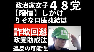 政治家女子48党規約 政治家女子48党 党員規約代表者堀江貴文 秘書齊藤 健一郎さいとう けんいちろう党首選挙対策委員長/次期選挙戦略本部長前参議院議員立花 孝志たちばな たかしご挨拶現在の政治は、特定の団体のしがらみや党議拘束などの活動規制、莫大な時間とお金を要しながら落選後の補填が一切ない選挙運動が当たり前であり、一部の既得権からの得票を得なければ長く政治を続けることが非常に困難です。その結果、既得権からの多数派の声が尊重され、少数派の意見が抑圧されるというゆがんだ民主主義が横行しています。真の民主主義において多数決はあくまでも公共の課題等に関する決断を下すための手段であり、少数派個人の基本的な人権と自由は保障されるべきものです。NHK党は、真の民主主義の実現のため、『諸派党構想』戦略を掲げ、少数派が抑圧されることなく公平に戦える場をつくることで政界に嵐を起こします。一部の既得権からの得票に頼るだけの政治家ではなく、志ある真面目で優秀な人が多数政治参加したいと思える世界を作り、真の民主主義実現を目指します。また、NHKを見たい人だけ受信料を支払い、NHKを見たくない人は受信料を支払わなくても良くなるNHKのスクランブル化も非常に重要な政策のひとつです。メディアは核兵器に勝る武器です。大きな力を持っているからこそ独立性が非常に重要であり、既得権に頼らないことで社会的使命を果たすことができます。しかしながらNHKスクランブル放送の実現を求める国民の声が未だ立法府に届かず実現に至らないのは、NHKが既得権そのものである何よりの証左ではないでしょうか。NHKによる被害の声は今もなお届き続けております。立花孝志はNHKの被害者をお守りするためにNHKスクランブル化が実現されるまで今後も徹底的に戦い続けることをここに誓います。 令和3年6月28日NHK党党首 立花孝志政策調査会長 兼 幹事長参議院議員浜田 聡はまだ さとし国政上の取り組み副党首前衆議院議員丸山 穂高まるやま ほだか============================政治家女子48党規約 第 1 条(名称・所在地) 本党は政治家女子48党と称し、主たる事務所を千葉県内に置く。 第 2 条(目的) 本党は以下の各号に定めることを目的とする。 ①NHKの受信料制度について、多くの国民及び視聴者が真剣に考える機会を提供すること。②受信料制度に疑問や不満を感じている国民に、同制度に関する法律や条例を制定または改廃する機会を提供すること。 ③NHK の問題以外の現代社会における既得権益が邪魔で解決できていない問題の解決に努める。 ④前項の達成のため、各問題の解決に取り組むいわゆる諸派の政党・政治団体の結集を呼びかけ、国政政党のプラットフォームを提供することで選挙に立候補するハードルを下げる、また活動を継続できる経済環境づくりを行う。 ⑤本党の目的を実現するため政治家を志す者に対し、その志を実現するための機会を提供すること。 ⑥本党の目的に共感し志を同じくする国民及び視聴者が協力して行動できる機会を提供すること。 ⑦強い正義感と責任感から内部告発や政治・社会運動を行った者及び内部告発をしようとする者や、同じく内部告発や政治・社会運動に関わることによって精神疾患となった者が、その正義感や責任感が正当に評価され、その評価に相応しい職場環境での労働が実現するために最大限の援助をすること。 ⑧本音と本気でぶつかりあい、真剣に楽しむ政治を自らが体現してこれからの日本の未来を考えていける機会を提供すること。 ⑨前各号の実現を目指すことにより、国政の発展と国民生活の向上を図り、あわせて党員相互の親睦を深めること。 第 3 条(事業) 本党は、前条の目的を達成するため、次の事業を行う。 ①YouTube、SNS 等インターネットの活用による情報発信、及び関係者との双方向コミュニケーションの構築 ②講演会、座談会等の開催 ③関係諸団体との連携 ④その他本党の目的達成のため必要な事業 第 4 条(党員) 本党の党員に関しては、「政治家女子48党党員規約」に定める。 第 5 条(議決機関) 1.党首は毎年 1 回の通常総会及び、必要に応じて臨時総会を招集する。 2.党首は必要に応じ役員会を招集する。 第 6 条(役員) 1. 本党には次の役員を置く。 代表者 1 名 党首 1 名 会計責任者 1 名 臨時管理人 1 名 監事 3 名以内 2.本党には必要に応じて次の役員を置くことができる。 副党首 5 名以内 幹事若干名 第 7 条(役員の選出及び任期) 1.代表者は齊藤健一郎とし、臨時管理人は立花公美とする。 2.前号以外の役員については、別に定める規定により実施する選挙・インターネットによる意見聴取等の結果に基づいて党首が任命する。なお、その任期は2年とし、辞任と再任を妨げない。 第 8 条(臨時管理人) 党首が死亡または重度障害等により意思の表明ができない場合には、臨時管理人がその党首の職務を代行する。 第 9 条(経費) 本党の経費は、寄附金、事業収入、政党交付金及びその他の収入をもっ