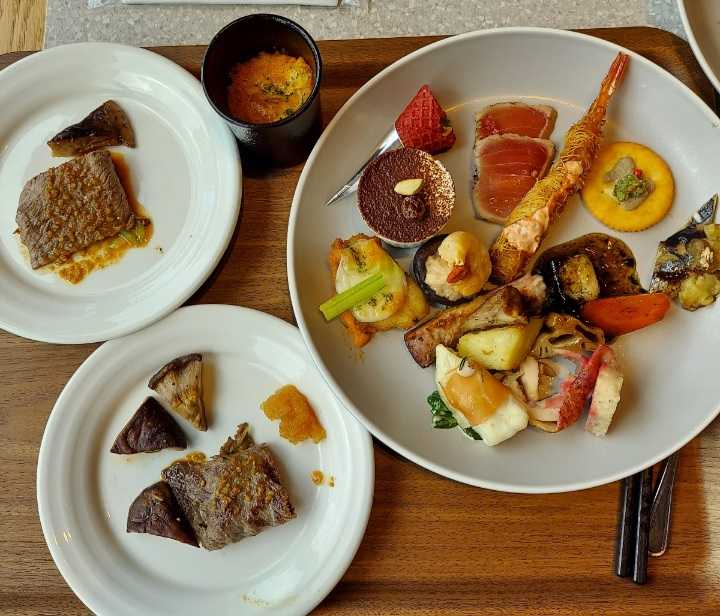 曇り時々雨 蒸し~っと湿度もあります。 今日はママ友と丹波篠山へ久しぶりの日帰りバスツアーに行ってきました♪ 今回の旅のスケジュールは、神戸須磨シーワルドホテルでランチバイキング→丹波篠山城下町散策→今田大内農園で黒枝豆もぎ取り体験→めんたいパーク神戸三田。 そして10大お土産付き♪ 野菜詰め放題、丹波黒枝豆もぎ取り体験と楽しいツアーになっていて、まさにてんこ盛り!! 午前10時15分頃 淡路サービスエリア到着! ![]() ランチのお店が午前11時半からでないと入店できないとのことで、午前10時50分までサービスエリアに滞在することに。 ってことはランチのお店はここから近くなのね。 ![]() ![]() 結構な休憩タイム笑 淡路サービスエリアはしょっちゅう来てるので、ワクワクしながら見るものもなしf(^^; 🚐🚐🚐🚐🚐🚐💨💨💨 お昼はこの間、友達と遊びに行った『神戸須磨シーワルド』のお隣の『神戸須磨シーワルドホテル』でランチバイキングでした! ![]() ![]() ランチバイキングの場所は、日程表には“神戸市内”としか表記してなかったので、ママ友と「ランチはどこやろね~っ?」と言ってたとこ。 まさか『シーワルドホテル』とは思ってなかったので、添乗員がバスの中で発表してくれた時にはママ友とふたり、「おお~♪」ってなりました。 是非とも行ってみたかったので嬉しい~\(^-^)/ ![]() ![]() ![]() プールではイルカさんがトレーニングしてます🐬 ![]() ![]() ホテル内は海をイメージしてるようでクリアで清涼感があります。 午前11時半 ![]() ![]() 『せとうちハーバーレストラン』 ![]() メニューには (ブッフェ形式 90分 4,400円)とありますが、実際は60分と時間短縮だったので、ツアー価格だったのかな? ![]() 窓際の席へ♪ この日は開放されてなかったけど、外でも食事できるのかな? ![]() 皆がいっせいに料理を取りに行くので、(他のツアー客も一緒だったし)混んでて時間がかかったのもあり、慌ただしくて1時間では足りなかった。 デザート、飲み物までたどり着けなかったよ~( ω-、) とか言いながら結構食べたけど!笑 ![]() ![]() こちらのホテルのお料理はとても美味しかったです。 特に鮎ペーストと山椒のカナッペ、黒酢の酢豚、白身魚の生ハム巻きクリームソース、牛肉ねぎ巻き鉄板焼 椎茸添え、めっちゃ美味しかった~♪ ![]() パンコーナーも充実していて、ミニハンバーガーも食べたかったなぁ。 スイーツにかぼちゃプリン取ったけど、崩れてしもたわ~笑 後、時間があれば〆にご飯と味噌汁も食べたかった! 腹八分だったけど、時間が足りなかったので仕方ない。笑 午後12時半。 時間が来たのでバスへ戻ることにしました。 ああ、名残惜しい~笑 その2へつづく・・・