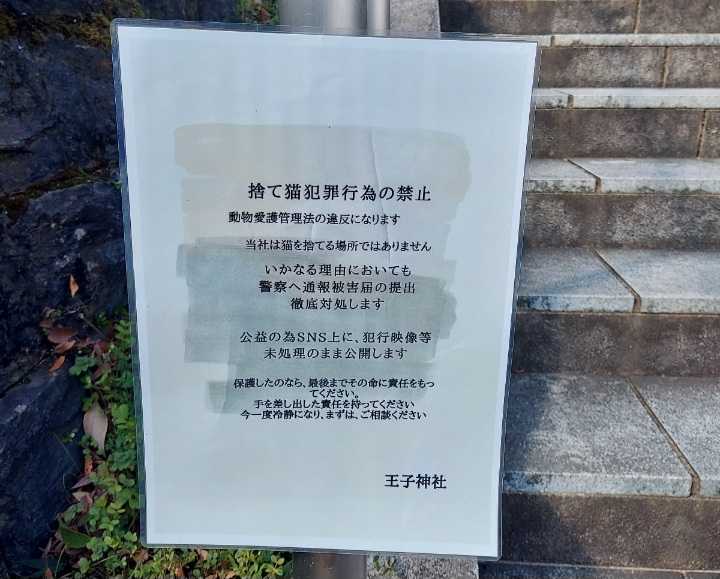 王子神社に2月の御朱印を頂きに参りました。 早くも2日だね~とか思いながら、社務所の窓口あたりに貼られてある今月の御朱印のデザインを見ると、2月の御朱印の他に『猫の月』の御朱印もありましたので、そちらも頂くことにしました。 本日は2月2日、ちょうどにゃんにゃん(ФωФ) 2月22日だとにゃんにゃんにゃんですね♪ 2月2日ということで、朝から『猫の月バージョン』の御朱印を貰いに来る参拝者が多いと神主さんが仰ってました。 ![]() 王子神社 2月の御朱印(通常バージョン) 鳴門には毎年コウノトリが飛来して繁殖してるので、コウノトリかな?と思ったけど、頭の部分や『鶴の恩返し』的な羽織してるのが描かれてるので、これは鶴ですな。 挟み紙はスキーにゃんこ♪ ![]() 猫の月バージョンの御朱印 あらん♪左上の胴長にゃんこは『2』の数字?笑笑 『王子神社』の肉球のデザインも、いつもと違うにゃんこキャラも可愛いのだ❤️ 日付もにゃんこ仕様だー🐾 ![]() ![]() 2月、3月は『冬詣御朱印めぐり』を開催されてるようで、本日頂いた2月の御朱印も冬詣共通奉拝印が押されてました。 冬詣や夏詣の御朱印めぐり、ずいぶん前に一度、挑戦したけど遠い神社もあるので、期間中に全部は参拝できなかったわぁ。 ちなみに参加されてる神社もその時によって違ってたりもします。 ![]() おっ!社務所からにゃんこが出てきました♪ 他の参拝者がにゃんこの側に居て写メってたので、遠くからパシャリ📷️ このコはおこげくんかな? 他のにゃんズは社務所の中で、ぬくぬくタイムかしらねぇ? ![]() ![]() ![]() ![]() ![]() ![]() 神社の階段の昇り口には“にゃんこ捨てないで!”の貼り紙や立て札が立てられてます。 ![]() ![]() ![]() 文化の森の敷地内には、神社で飼ってない外猫ちゃんもいるので、心ない人が猫を捨てに来るのでしょうね。(外猫ちゃんは、神社にも遊びに来ます。) ほんとにペットを飼うなら、最後まで責任を持って飼って欲しいものです。 お気に入りの記事を「いいね!」で応援しよう