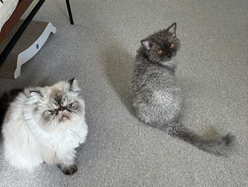 セルカークレックス コレクションあけましておめでとうございますお便りあけましておめでとうございます昨年は素晴らしい子をお譲り頂きありがとうございました本年もどうぞ宜しくお願いいたしますてんは病気一つせず、元気に大きくなっていますもはやりんより大きく、5キロ近いです (笑)イケメンになりました 精悍な姿とは違い私にくっついて寝る甘えん坊ですおしゃべりが好きで、よくごにょごにょ言っていますずっと膝の上にいる子で家族みんなに愛されていますりんともトムトジェリーの様に仲良く追いかけっこやかくれんぼしておりますので、どうぞご安心くださいね無事に去勢も終えました今年も可愛い子猫ちゃんを楽しみにしております寒い日が続きますどうぞ、お身体ご自愛ください明けましておめでとうございます。てんちゃん大きくなりましたね~。そして、美しいセルカーク。何より甘えん坊なのが、一番の愛され要素ですね!りんちゃんの導き、ご家族様の二匹への接触が良い性格作りに現れているんですね。