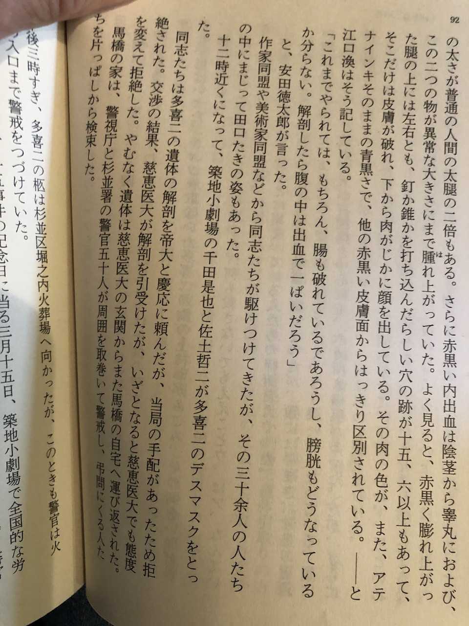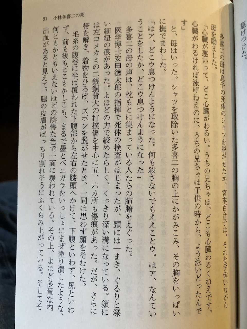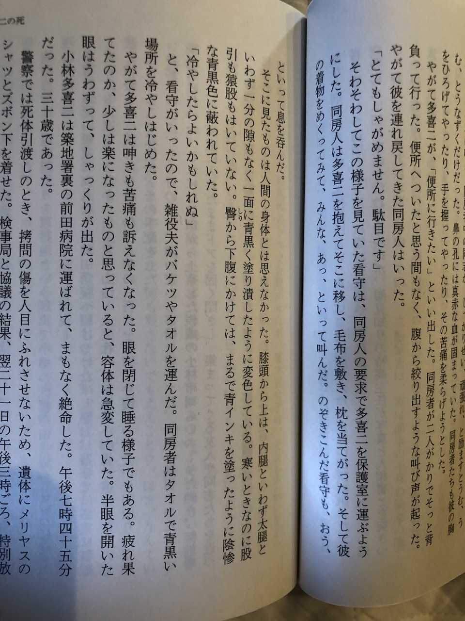 ![]() 11月は一冊しか本が読めませんでした。 忙しいのと、本が手強いせいです。 ![]() 小林多喜二の名前は知っていますし、プロレタリア文学という名も知っています。 獄中死したことも知っています。 でも、高校時代、小説を読んだのか、読んでないのか、記憶がありません。 ![]() 戦争へひた走る軍隊の潮流を、清張が昭和史発掘シリーズの中で幾つも書いていますが、軍人の名前が多すぎて、また、資料として出てくる取り調べの調書が旧仮名遣い、カタカナ、文語体で理解できず、全体像が、おじいさんには把握できず、今回も陸軍士官学校事件は最後まで読めませんでした。 ![]() 小林多喜二が特高で拷問され殺される部分は、本を閉じたくなるほど残酷でした。 ![]() 戦前の警察の取り調べとはこんなひどいものかと改めて知りました。 ![]() 戦争地での拷問は、今も変わらないと思うと恐ろしいです。