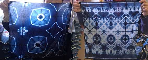 団体30人の体験教室を依頼され実質60分のインド藍染め、夫婦2人で精一杯努めました。最近多人数の教室していないので、もはや一発勝負だけど準備だけは万全を期して。予めハンカチに3種類の簡易折りを施して参加者の皆さんに好きなように絞りを入れてもらう方式。開会から終了まで90分間、なんとか無事に染め上がりました(^^