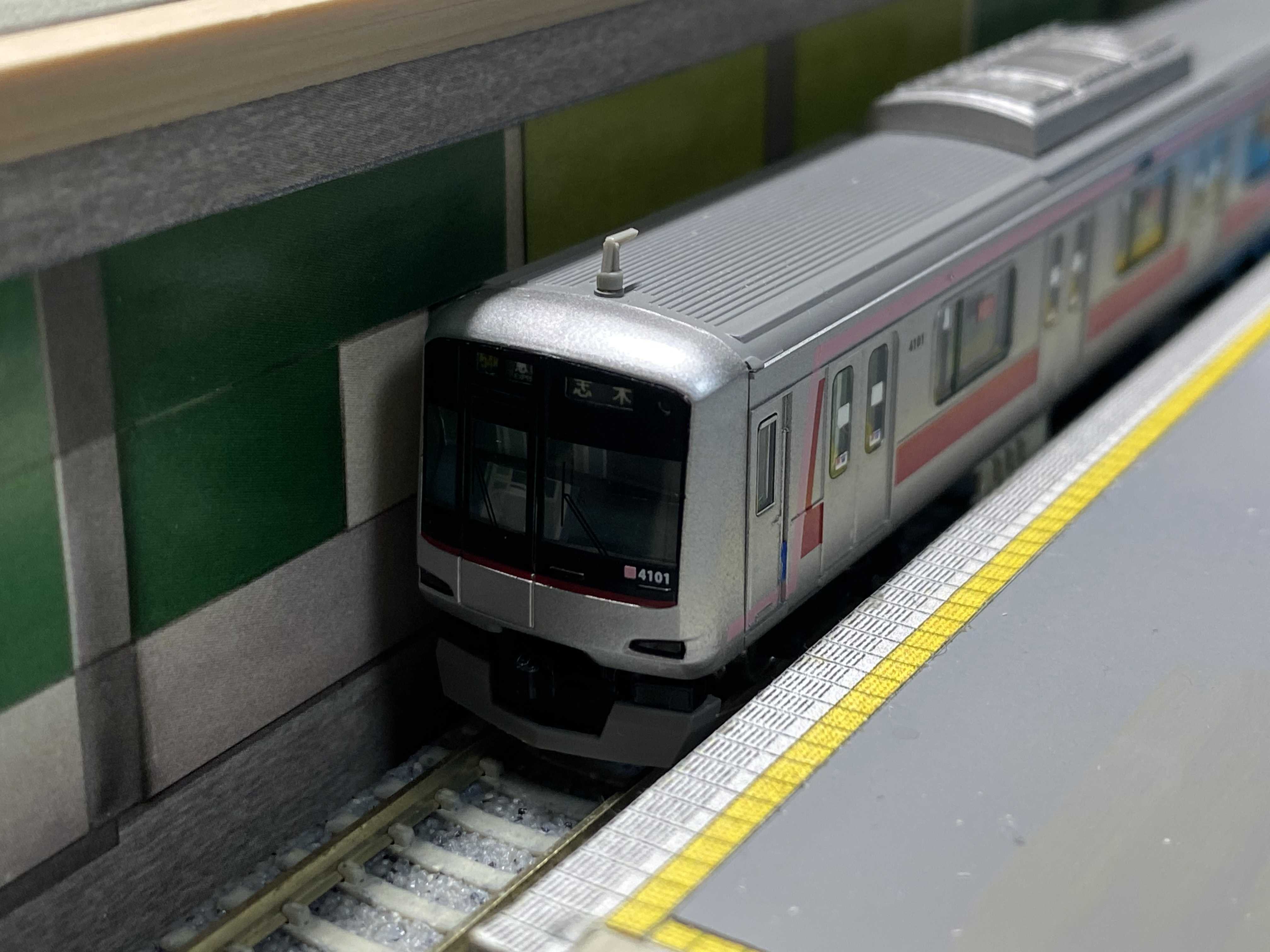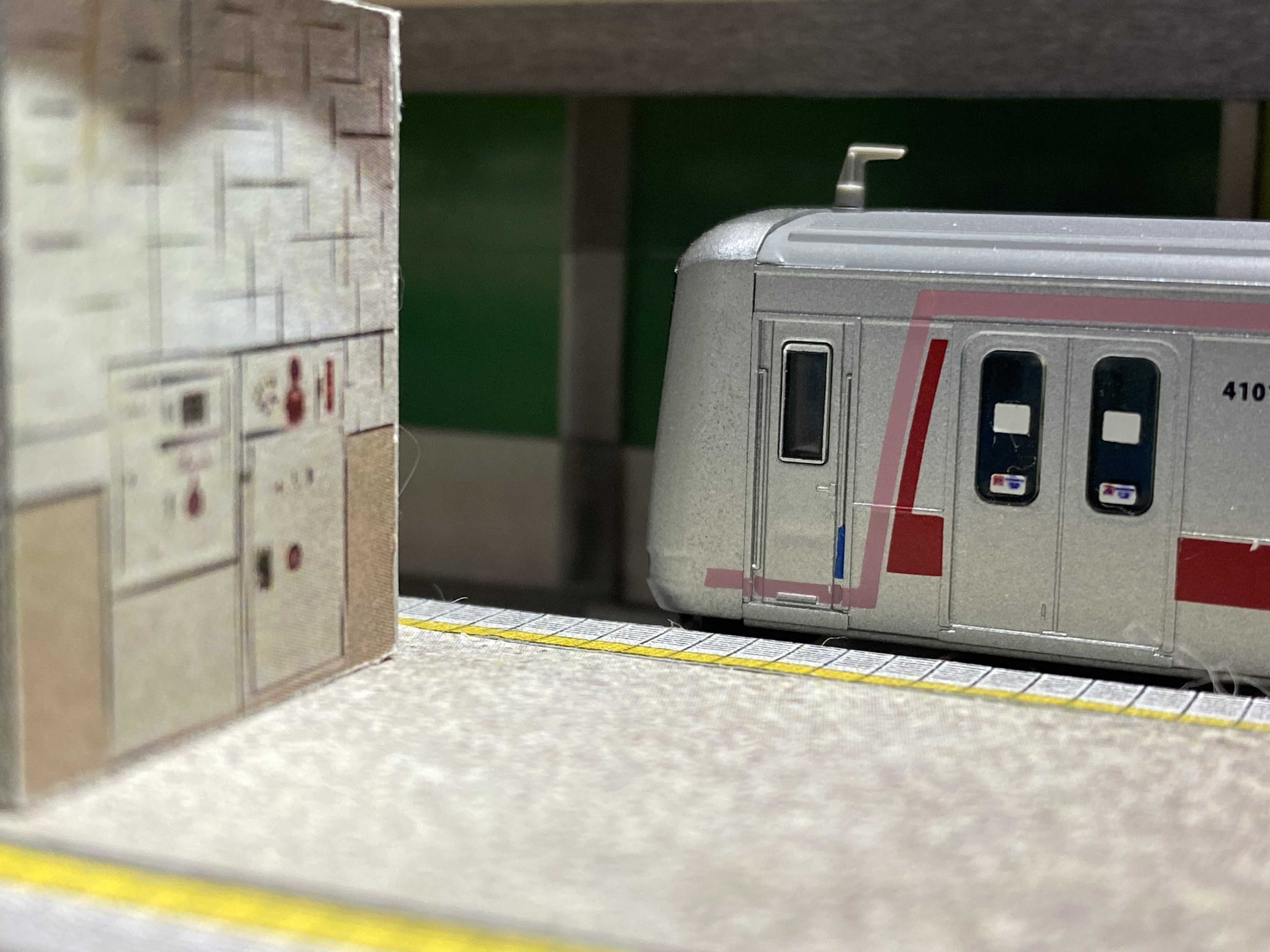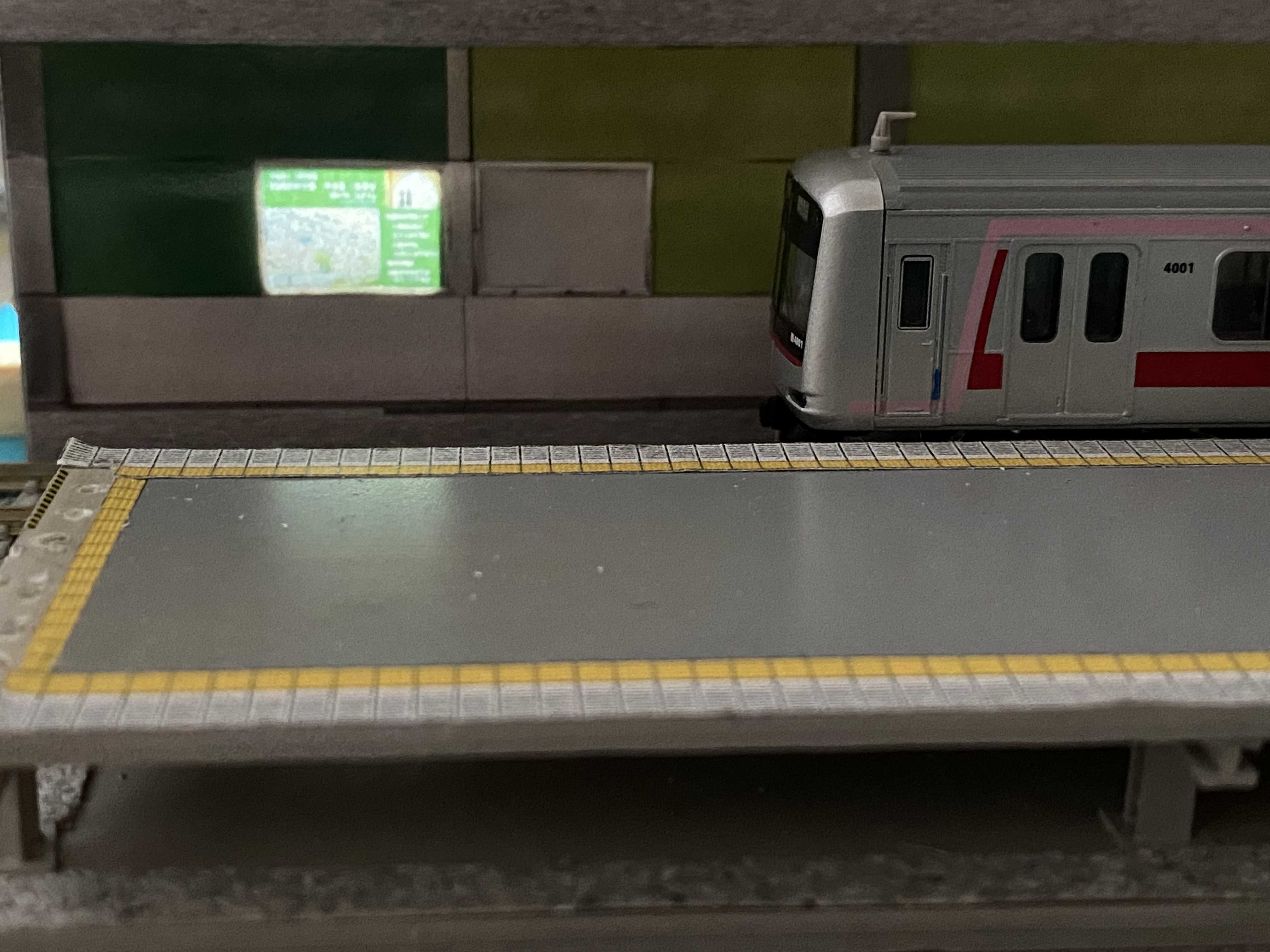 こちらは寸法合わせる為の試作です。 実物の写真を貼り合わせただけです。 データ欲しい方いたら差し上げます。 田園調布駅作ってから思ったのですが、田園調布駅より日吉駅を作りたくなってしまいました。 ![]() ホームや壁などは超適当ーなので、あとで交換します。。日吉駅にしてしまいますが。 ![]() 広告も光らせてみました。 ![]() 今後は東横線複線と目黒線複線をTNOS制御のレイアウトを作成予定です。