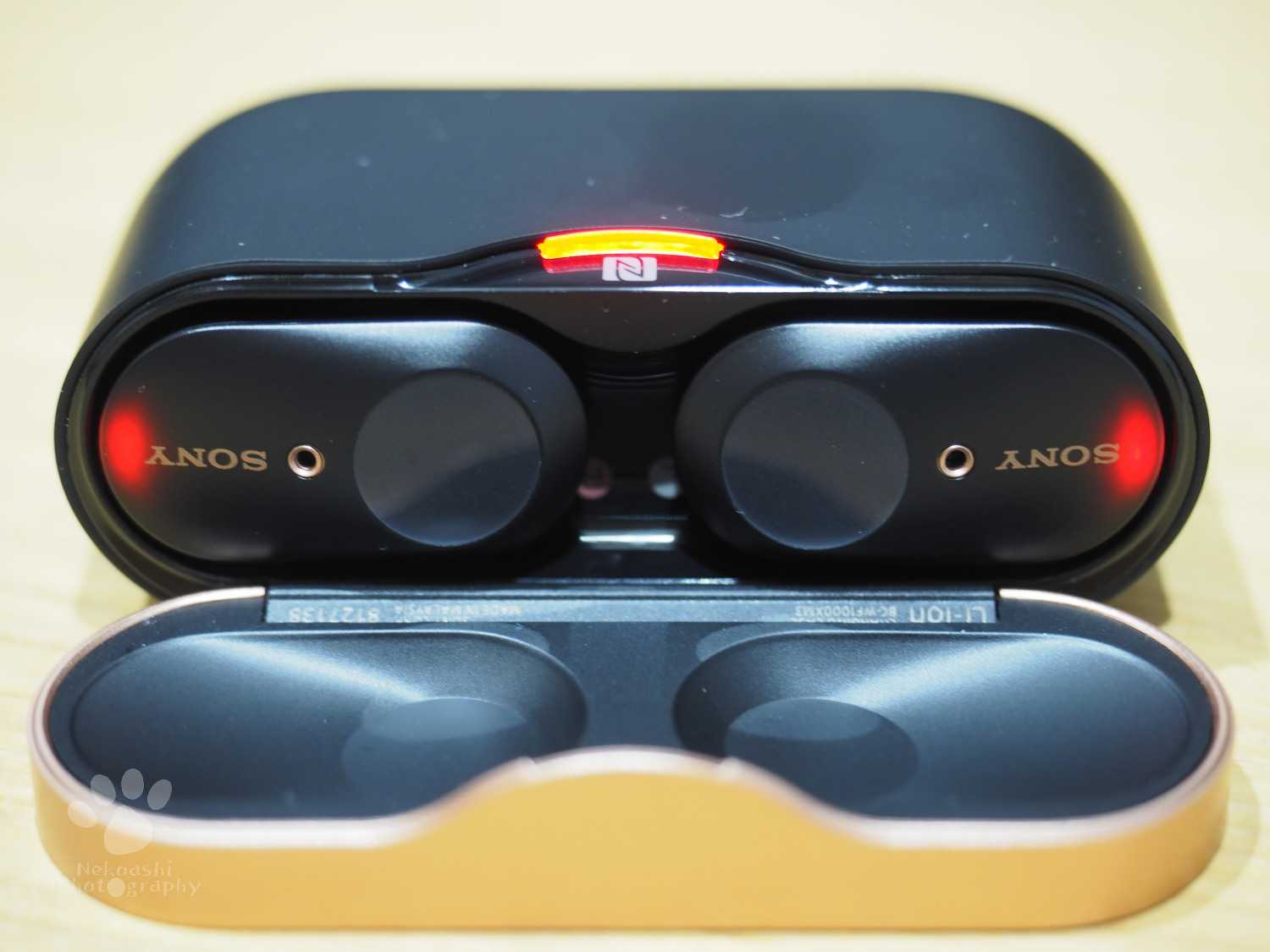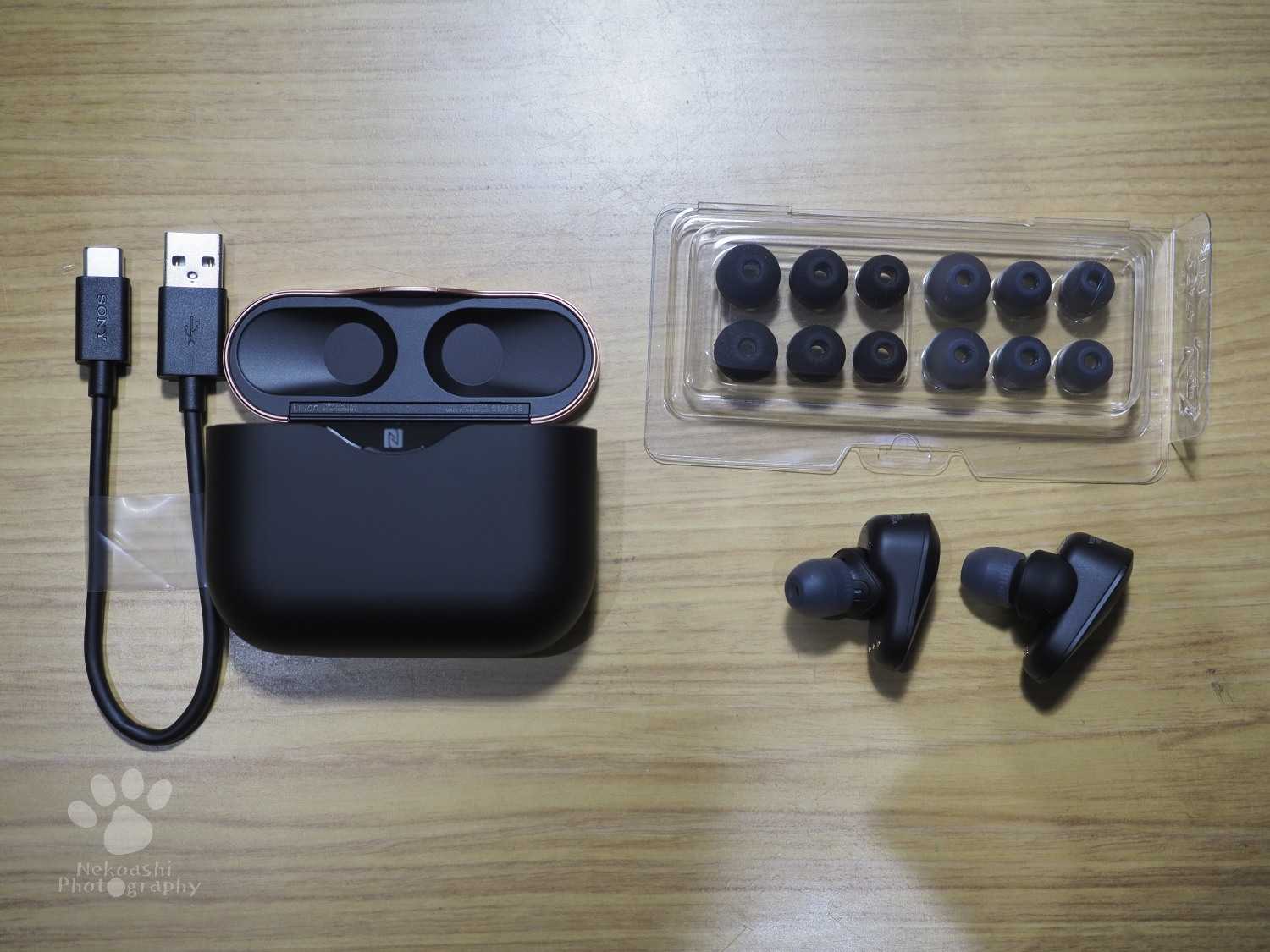 USBのTYPE-Cが刺さるようになっていて、とても便利。 かつ、取り出すと自動的に電源ONしてBluetoothの接続も自動に行う。このイヤホンを入れるのにはめ込む必要はなく、磁石の引力ですぽっと収まるようになっている。 これが結構子気味良くて嬉しい。 スマホや音楽プレイヤーとのペアリング: 基本のやり方は両耳のタッチセンサー部を同時に7秒間押すとペアリングモードになるので 接続されるスマホでペアリングすれば接続が可能。 SONYはこのペアリングにNFCを使用している為、”N"マーク同士をほぼ密着させるとそれだけでペアリングが完了する。これは思っていたよりも便利です。 とりあえず、これで使えるようにはなったのですが、本当にハイレゾ級の音質になっているのか、またその聴き具合はどうなのかはまたレビューします。