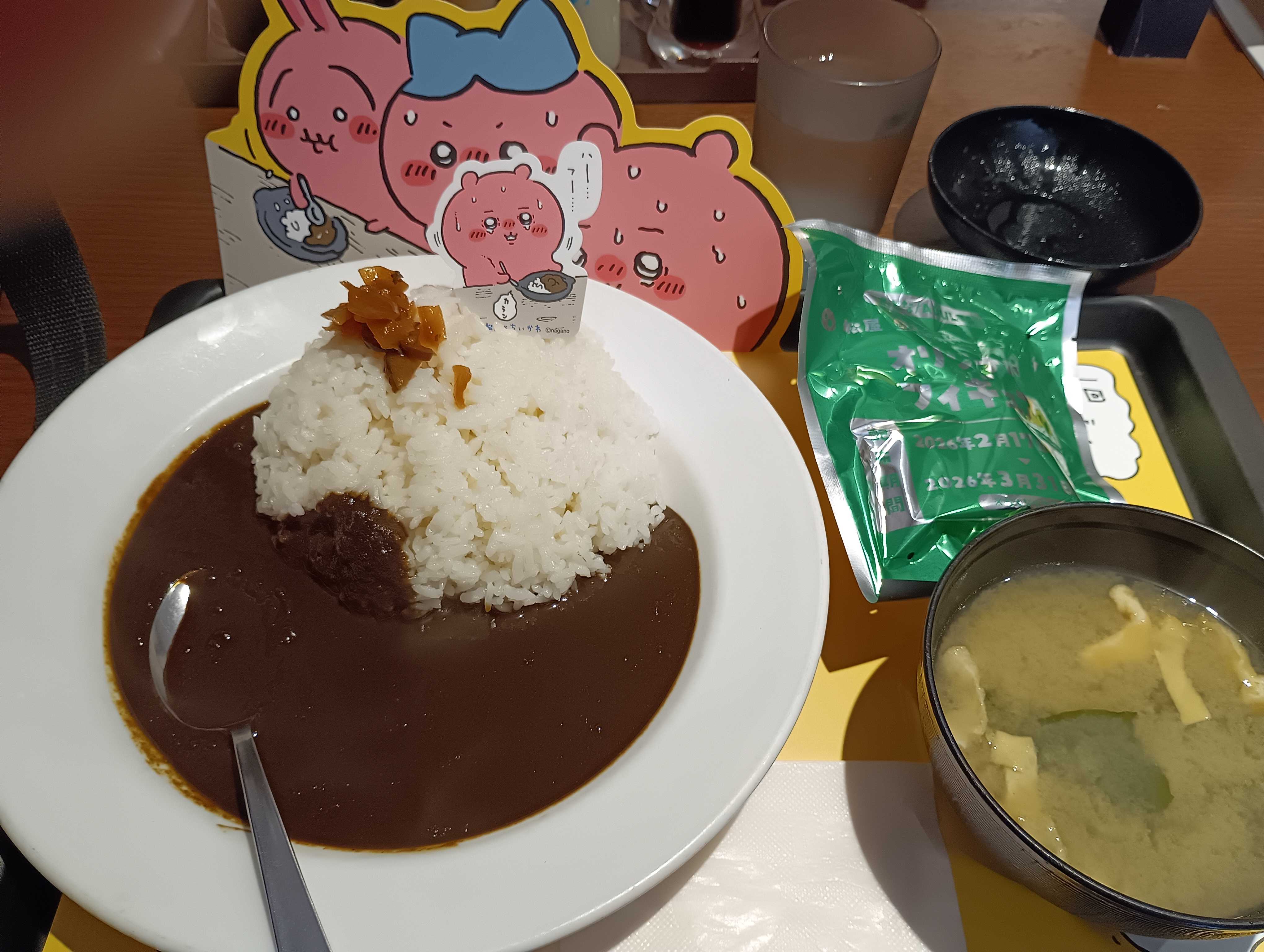 今日は、いい天気になりましたね。でも、朝の冷え込みは、やっぱり強い。日中は、それほど上がりませんでしたが…。今日は、有給休暇を取って、眼科の病院に。有休消化と、目薬をいただくため?次回の検査まで、期間があるので、その中間あたりで目薬通院1回。今日は、平日なので、それほど混まないかと思っていたのに。土曜日の混み方に比べたら、まだましかな?あの遠きは、病院内の待合室と、病院前の入り口周辺が、待合所に(笑)でも、今日は、それにちょっと近い感じ。ただ、お子様が少なかったので、ご家族連れが少なく。患者は多かったですが、院内で、待つことができた。私は、10時過ぎに入って、最初の検査は、11時10分ころ。目薬をもらうにしても、まず検査をしてからですから。次に、先生の問診が…。でも、12時まわったのかな?ちらっと聞こえてきた声からすると、今日は、予約の患者さんが多くて、予約なしは、その後回しに。ま、理由はわかりますから、待つしかないですね。今日は、目薬は院内処方だったので、会計後すぐもらえました。それでも、病院を出たのは、12時40分ころ。次からは、予約しないで入るときは、院長先生の診察の日以外(笑)そちらの方が、すいているらしい。検査するときは、予約をしますから、それほどはかからないで終わるはず。そうなると、この病院を選んだ理由が…。本当は、水曜日に有休消化と眼科をと思っていたのに…。ほかの日にするなら、ほかの眼科でもよかったかな?その時は、別な病院は、水曜日がお休みだったので、こちらに決まったのですが…。今日は、院長とは、ちょっと話をして。最近、視野のはずれの方で、白いものが見えると、話をしたら。ま、たぶん、緊急性はないと思うのと、緑内障関連ではなさそうとの話が。緑内障なら、その白い部分は、もうずーっと白いままになるはずだからと。それと、次回は検査の予定だし、その検査でも、その辺は、言われなくても検査項目に入っているからと。先生は、希望があれば、今日検査をしてもいいですよ、 とのお言葉をいただきましたが、緊急性がなければ、次回の検査で大丈夫かと。検査は時間がかかるので、今日は、もう時間が…。それと、別件で言われたことが。目はかゆくないですか?目薬はありますか? とたぶん今日の検査で、眼圧がちょっと上がっていた。もしかしてそれで、上がったのかも?花粉症対策の薬は、内科の病院でもらっていますが、目薬はもらっていないと話したら、処方しますかと。喜んでお願いしました(笑)やっぱり、最近、家で目がかゆいときが多いので、そのたびに、顔を洗ったりしていたので、目薬があると、いくらか楽になりそうな気もしたので。後は、白内障もちょっと言われたので、そろそろ、考えようかな?ただ、いい反面、面倒なことも一緒に考えないといけないので、ちょっと悩みますね。病院を出たら、先ほども書きましたが、もう午後?本当は、早めに終わって、ウオーキングをしてからお昼にしようと思っていたのに。仕方なく、ちょっとだけ歩いてからお昼に。松屋で、ちいかわの鬼辛カレーを。どうも、どこかとのコラボ商品?松屋×ちいかわコラボ前々からやっていたのですが、コラボ商品で、しかも子供向け?よくわからず、どうしようかと思っていたのですが。今日、思い切って頼んでみました(笑)今は、第2弾のようです。鬼辛という言葉に騙されましたね。いや、でも本当に辛いです。お子様向けではないような気がするのは私だけかな?間違いなく大辛以上?激辛になってしまうかも。食べるときは、辛さ対策をしっかりとって、食べてください(笑)私は、ご飯大盛りで(笑)ポテサラとか、生タマゴなども、有効かな?