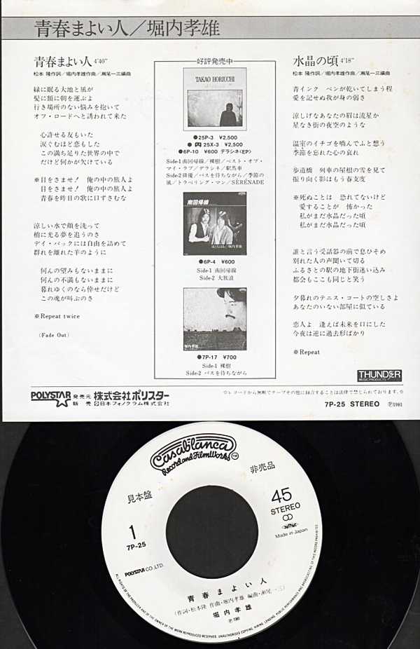 堀内孝雄さんの5枚目のソロシングル。
