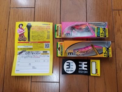 2.5号の小さいサイズはあまり持ってないので 補充してきました ![]() 9/1~キャンペーン実施店で対象のエギを2本買うと クジ付きエギ王ステッカーが貰えます そして、その場でクジをめくって限定エギをゲット出来るかも ![]() 運の無い私はやっぱり スマホからWチャンスに応募して これも さらにクジを20枚集めたら必ず限定干支シリーズのエギが貰えます ![]() ということは エギ40個買うってこと 頑張るぞ!! 【楽天スーパーセール】 ヤマシタ エギ王Qライブ490グロー PONE(ピオーネ) 2.5号 【9/4(火)20:00〜9/11(火)01:59】 当たった人もそうでない人もポチっとな にほんブログ村 |