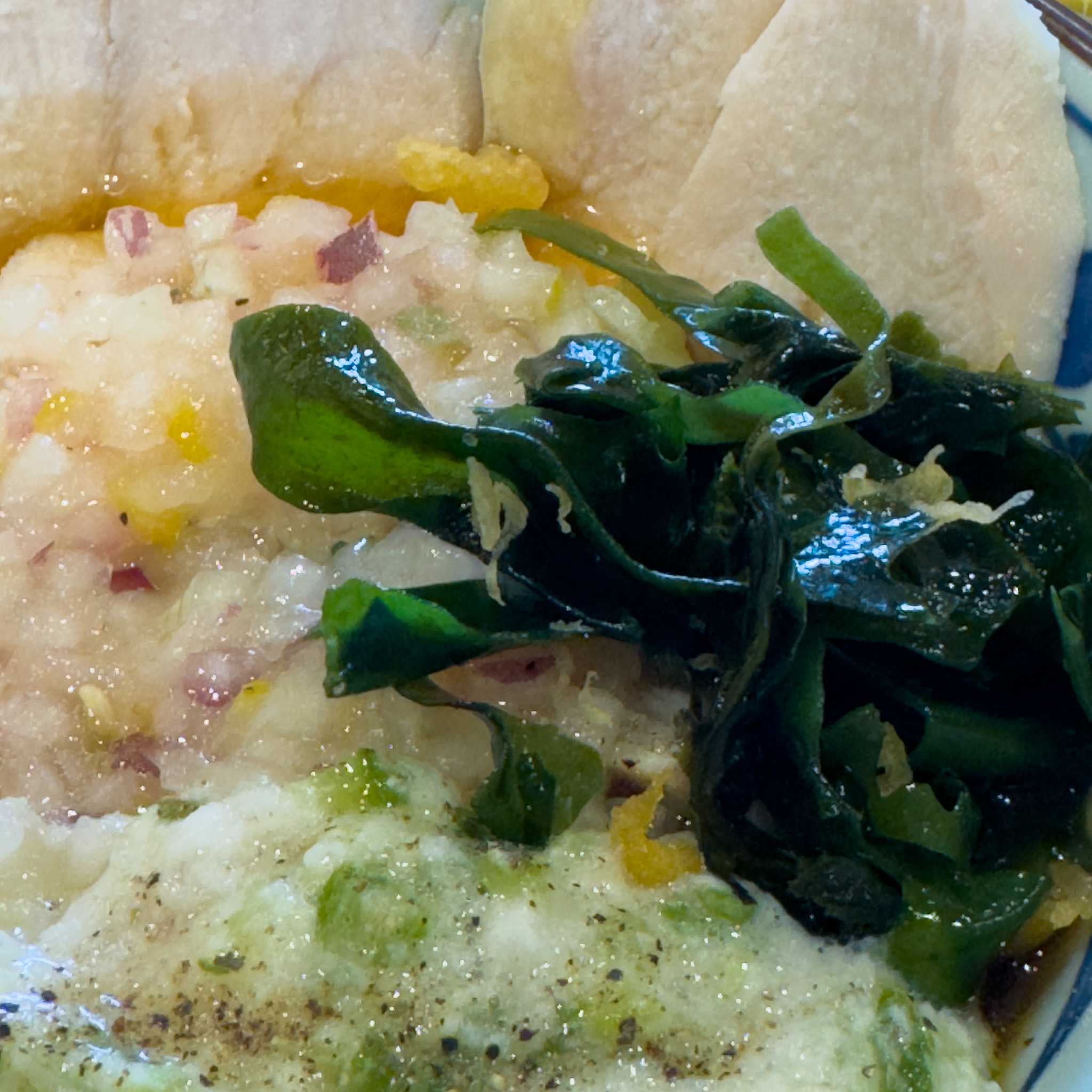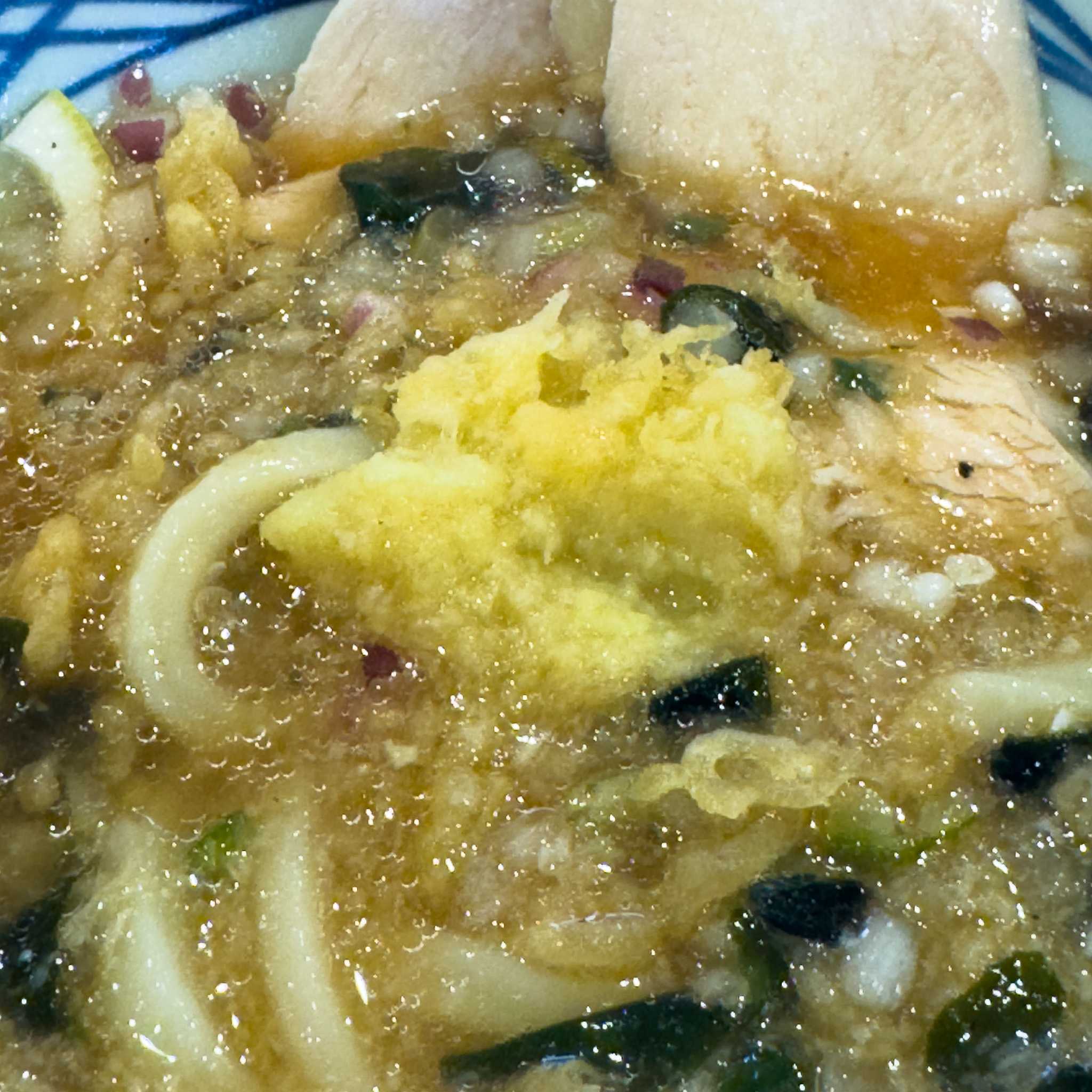 ![]() 柑橘香る ねばとろ鶏ぶっかけ 860円。 ![]() 30円引きクーポン発動。 ![]() トッピングのわかめと天かすを投入していただきました。 レモンの爽やかな感じと、とろろにはオクラの刻んだのが入っていてめっちゃねばねばで美味しい。 ![]() 終盤で生姜を入れてさらにパンチを効かした味変。 美味しかったです。 ごちそうさまでした! 味:★★★★ コスパ:★★★★ 満足度:★★★★ お店:丸亀製麺 相生 値段:柑橘香る ねばとろ鶏ぶっかけ 860円 場所:兵庫県相生市那波南本町1868−2−7 お気に入りの記事を「いいね!」で応援しよう