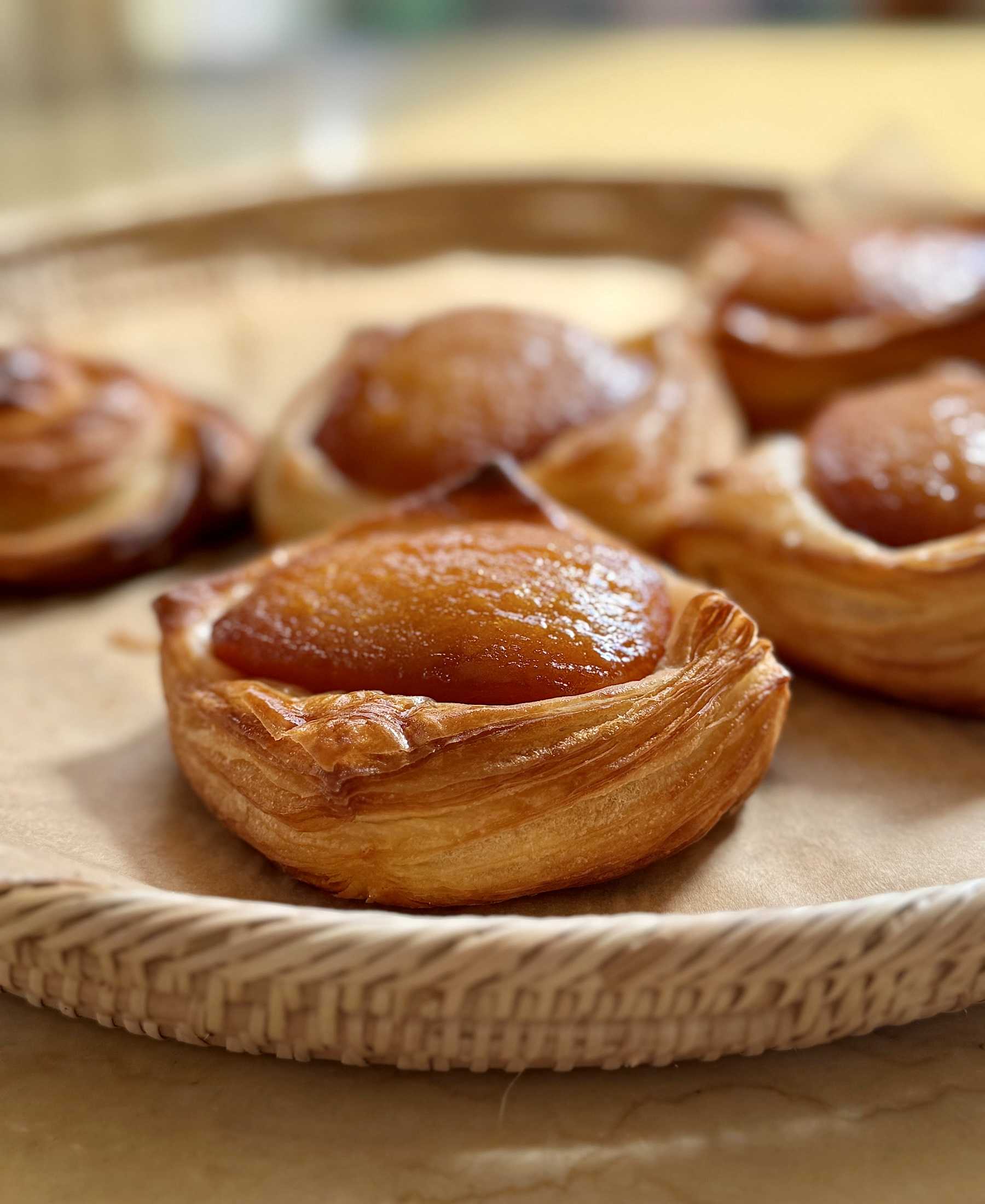 ![]() 購入した紅玉を2回に分けてセミドライにし、1個だけ余りました。 簡単な焼き菓子か簡単なタルトを作ろうか? もっと簡単にサラダに入れる?とか、簡単に何か作る事ばかり考えていましたが、心を入れ替えて(笑)たった1個のリンゴで4つのデニッシュパンを作る事にしました。 昨夜は皮を剥いた紅玉を4つ割りにして、キャラメリゼにして火を入れて、そのまま鍋で冷ましました。 4個のデニッシュだから、生地もほんの少しです。 3つ折りを3回しますが、1単位が少ないのでものすごく作りやすいです。 以前、門間みかさんのオンライン講座で習った折り込みなのですが、暑い時は全くやる気が出なかったけれど、やっと作りたい意欲が出てきました。 ![]() オーヤマくんで焼きました。最後までMaxの250℃です。 焼き立ての冷め立ての一番美味しい時に食べれるのは作ったご褒美なんですよね。サックサクですごーく美味しかったです。 ![]() 成形時に周囲を包丁で落とすので、端生地ばかりをクルクル巻いて焼きました。 意外にこれが美味しいのです。 久しぶりのデニッシュの生地作りが楽しかったし、こんな美味しいものを作らないと勿体ないと思いました。また作りますよ~ お気に入りの記事を「いいね!」で応援しよう