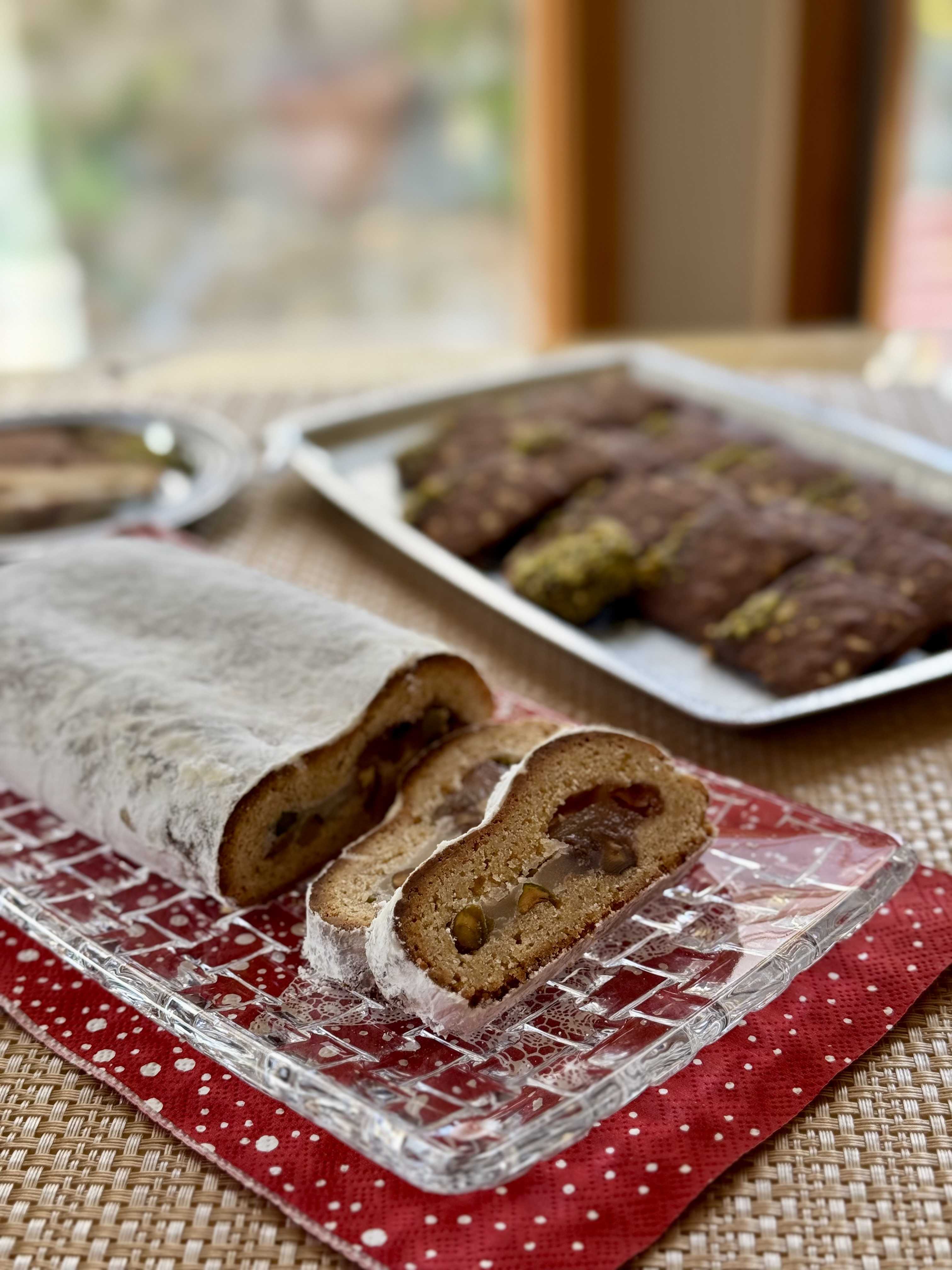 昨年も作った、イージーシュトレン・・・・🎄 毎年、色んなお店で出されるシュトレンですが、人気がすごいですね。 各お店の特徴があって、美味しそうなのがいっぱい、買う方も選ぶのに迷いますね。 以前は大好きだったシュトレンですが、今ではそんなに食べたい気持ちが無くなってしまいました。 でも、形だけでも作りましょうと、昨年と同じシュトレンを作りました。 ![]() そんなに生地量は多くないのですが、意外に大きく焼けました。 ![]() 生地に生クリームが入り、焼き上がりにギーをたっぷり含ませているので、サクサクしてとても美味しいです。生地にはシナモンを入れ、中にセミドライの紅玉と白あん、クルミとピスタチオを入れています。 生地量が少し多かったようですが、この生地が美味しくて、これはこれでいい感じです。 ![]() ココアとスライスアーモンド入りのサブレ・ショコラ・アマンド。 ![]() チョコレートを少し付けて、ピスタチオを細かく砕いたのをパラパラと。 ![]() イージーシュトレンだけど、これで満足しました。 簡単だから、また作るかもです。 ポリ袋でつくるたかこさんのあたらしい焼き菓子 材料を混ぜて焼くだけのかんたん・おなか満足レシピ/稲田多佳子/レシピ【3000円以上送料無料】 bookfan 1号店 楽天市場店 お気に入りの記事を「いいね!」で応援しよう