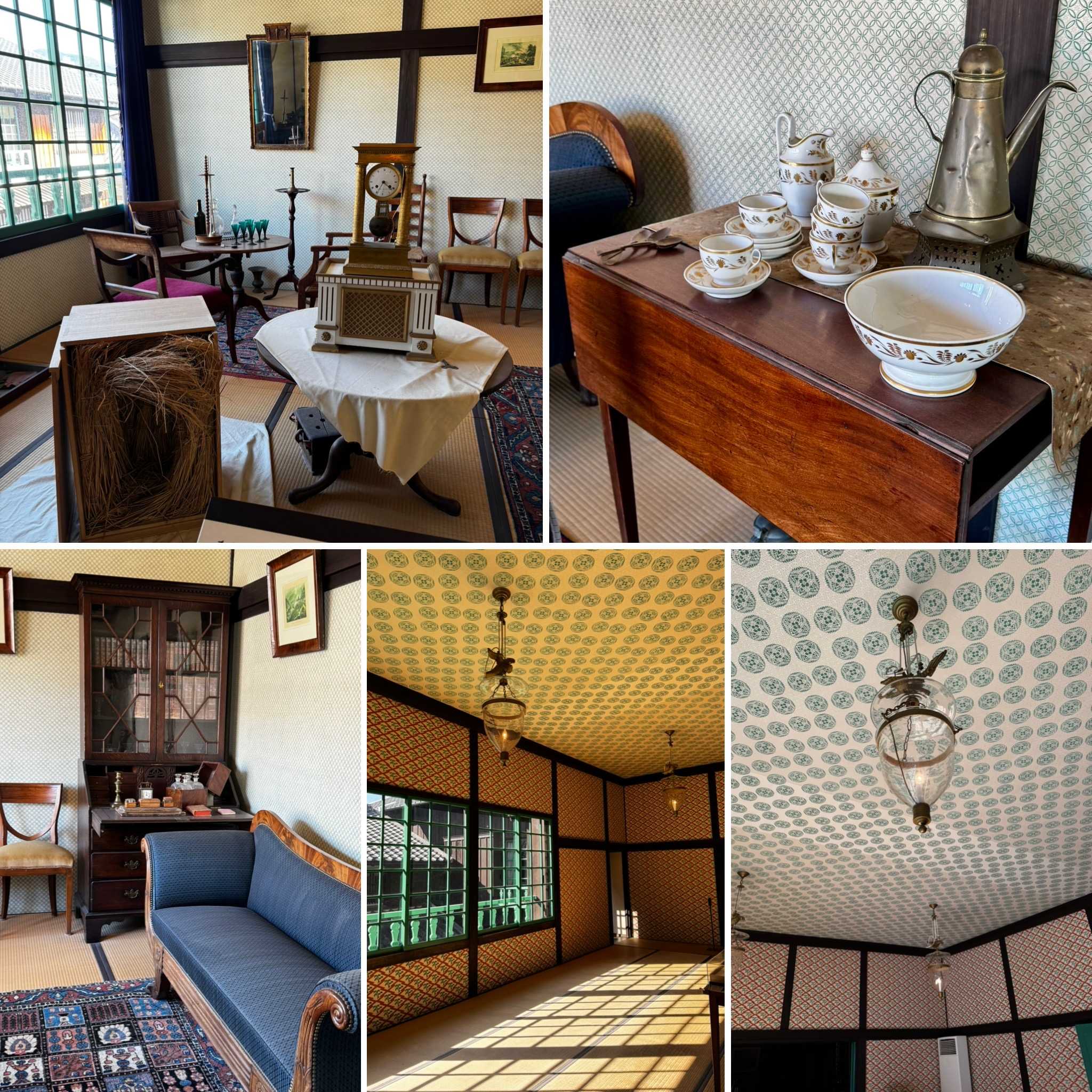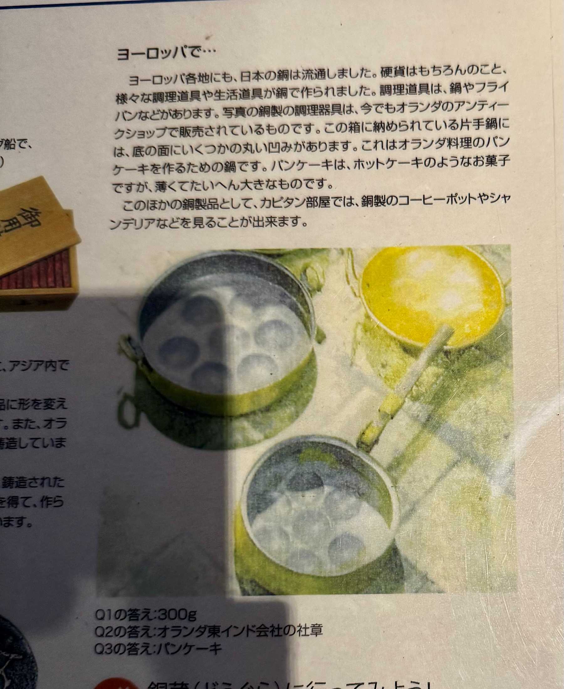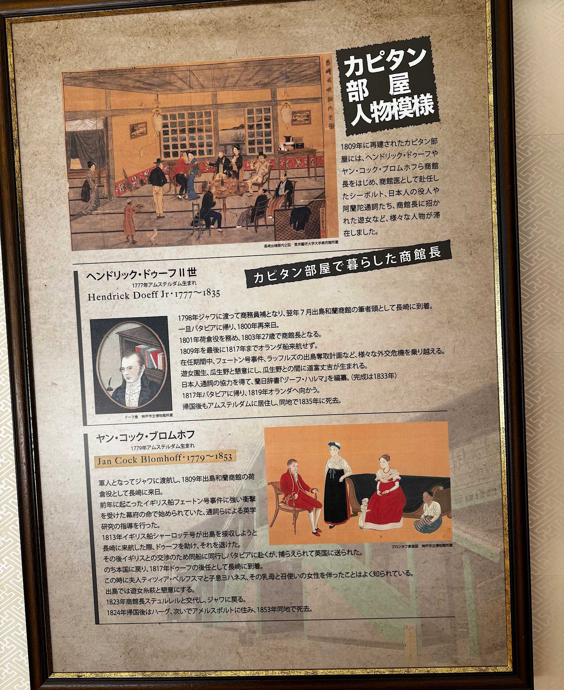 新地中華街から歩いてすぐです。 ![]() ここは予め行く予定にしていたところです。 ![]() この橋を渡ると、 ![]() ![]() 和服姿の門番?お役人さん?(聞いたのに忘れてしまった💦)写真を撮らせて欲しいとお願いすると、マスクを外してこのポーズ。サービス満点です。 ![]() ![]() ![]() この建物はオランダ商館長(カピタン)の事務所や住居として使用されていたそうです。 ![]() 中はこんなに素敵。壁紙や天井の模様が可愛く、使われていた食器も素敵です。 ![]() クリスマスを祝う宴の席を再現。 ![]() ![]() パンケーキを焼くもの ![]() ここは色々な展示があり、結構時間を忘れて楽しめます。当時の姿を出来るだけ残した建物の復元は素晴らしく、行ってよかったです。 ここで、バスでお隣になったソロ旅マダムとまさかの再会でビックリ。 長崎の観光スポットって色々あるのにね~偶然出会うなんてねぇ〜また出会うかもね~と、笑ってお別れ。 ブログを書きながら思い出したものがあります。 コレなんですが、 ![]() まさしく、これは長崎の出島かなと思うのですが? 母はモラ刺繍の教室へ行っていまして、こんな大作が他にも沢山あります。(困っています💦) ![]() これはモラ刺繍と言うよりは、アップリケかパッチワーク的な手法だと思います。とにかく、細かいです。 ![]() 今のワタシ位な歳の頃に作ったと思いますが、手先が器用で根気のある人だったので出来た大作だと思います。ワタシはイマイチ根気がないので、こんなのを作るのは無理ですが。 そういえば、南蛮異人の絵柄が好きだったようで、こんなのを他にも作っていまして、長崎まで行ってたなぁと思い出しました。そういう所はやっぱりワタシの母だなと。 ただ、母の全作品に言える事ですが、額が大きいのと、ワタシの趣味じゃないので、お蔵入りなんですよ。。。 母には申し訳ないけれど、処分に困っています💦 趣味は、ワタシのように作って食べたら終わり。これに限りますね(笑) お気に入りの記事を「いいね!」で応援しよう