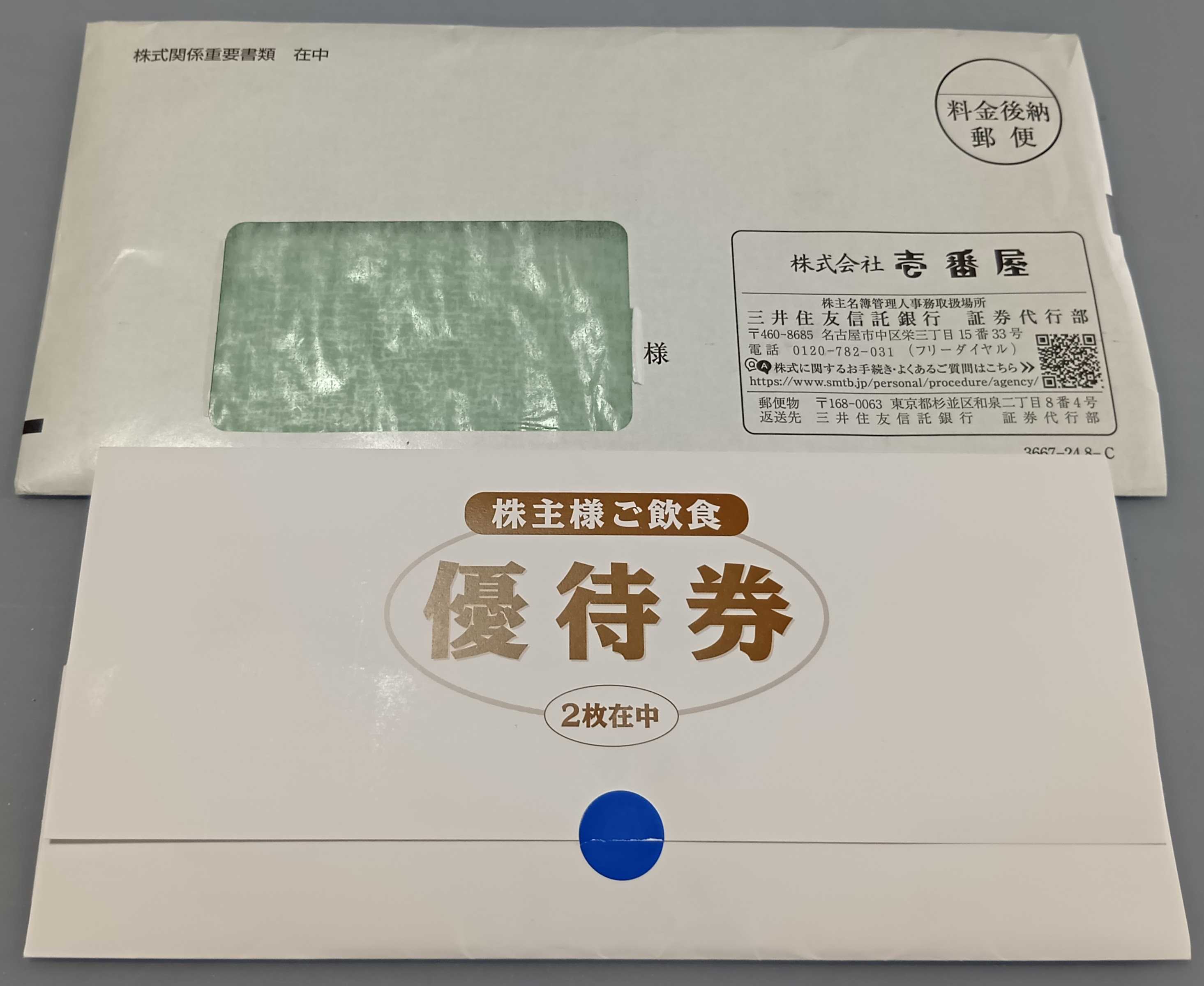 ◆壱番屋から株主優待のお食事券が届きました~!年に2回もらえる優待ってありがたいです