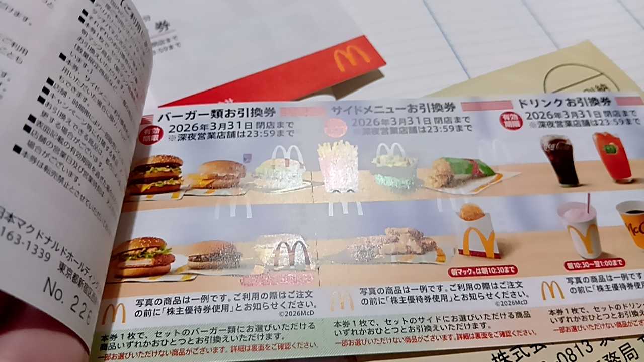 ◆マクドナルドから株主優待のお食事券が届きました~!私、年齢が年齢なので、ハンバーガーとコーヒーは好きなのですがもうポテトはいらないかなぁ…とメルカリで売ってしまっておりますポテトですが、お店によって味が違うんですよね外国人観光客が沢山いるところと大学が近くにあるお店は本当に美味しいです