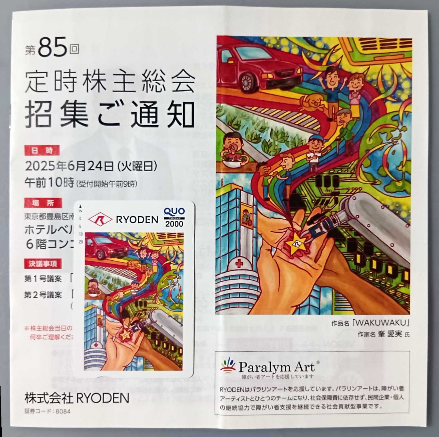 ◆RYODENから株主優待のクオカード2,000円分が届きました~!会社のランチ代で使わせていただきました応援クリックをお願いいたします♪人気ブログランキング