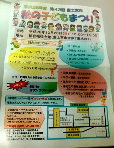 平成28年10月23日 日曜日☆富士宮市福祉会館3F☆秋の子ども祭り