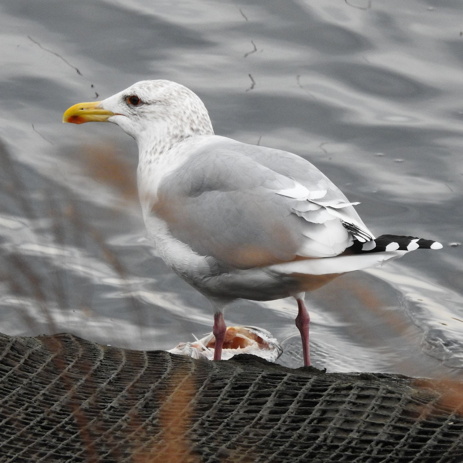 満潮時刻5:01 191 16:11 190干潮時刻10:22 88 22:43 7 中潮最高気温 15℃ 最低気温 9℃ 月齢 12.2 日の出 6:12 日没 17:35カラスの群れの中に、上クチバシが無くなっている個体を見かけた。この先どうやって生き抜くんだろう?出来る範囲で追跡してみたい。オオセグロカモメ、この個体は眼差しが優しく見える。ハシビロガモは5羽いたが、生殖羽の個体を見かけない。この個体はオスで生殖羽に換羽の途中。メスの生殖羽はオスのエクリプスに似ているが、目の光彩がオスに比べて暗い。ノスリはカラスにガッチリとガードされていた。今シーズン初めてのエナガ、一瞬で飛んで行ってしまった。群れはエナガ3羽・シジュウガラ3羽と、この後で書くヤマガラ2羽で構成されていた。ヤマガラ、留鳥でシジュウガラに次いでよくいるカラの仲間と言われているが、観察地の大田区では初めて見つけた。スズメと同じくらいの大きさで、メジロやシジュウガラ・エナガより大きめなので、山の鳥を見つけるトレーニングに持って来いの野鳥。コゲラのように樹木とドラミングしながら昆虫卵を食べていたかと思うと、落ちている木の実も啄ばんでいた。国際自然保護連合レッドリスト、軽度懸念。警戒感は少なく、好奇心が旺盛の様で近くにも来てくれたが、電池切れ悲しい。