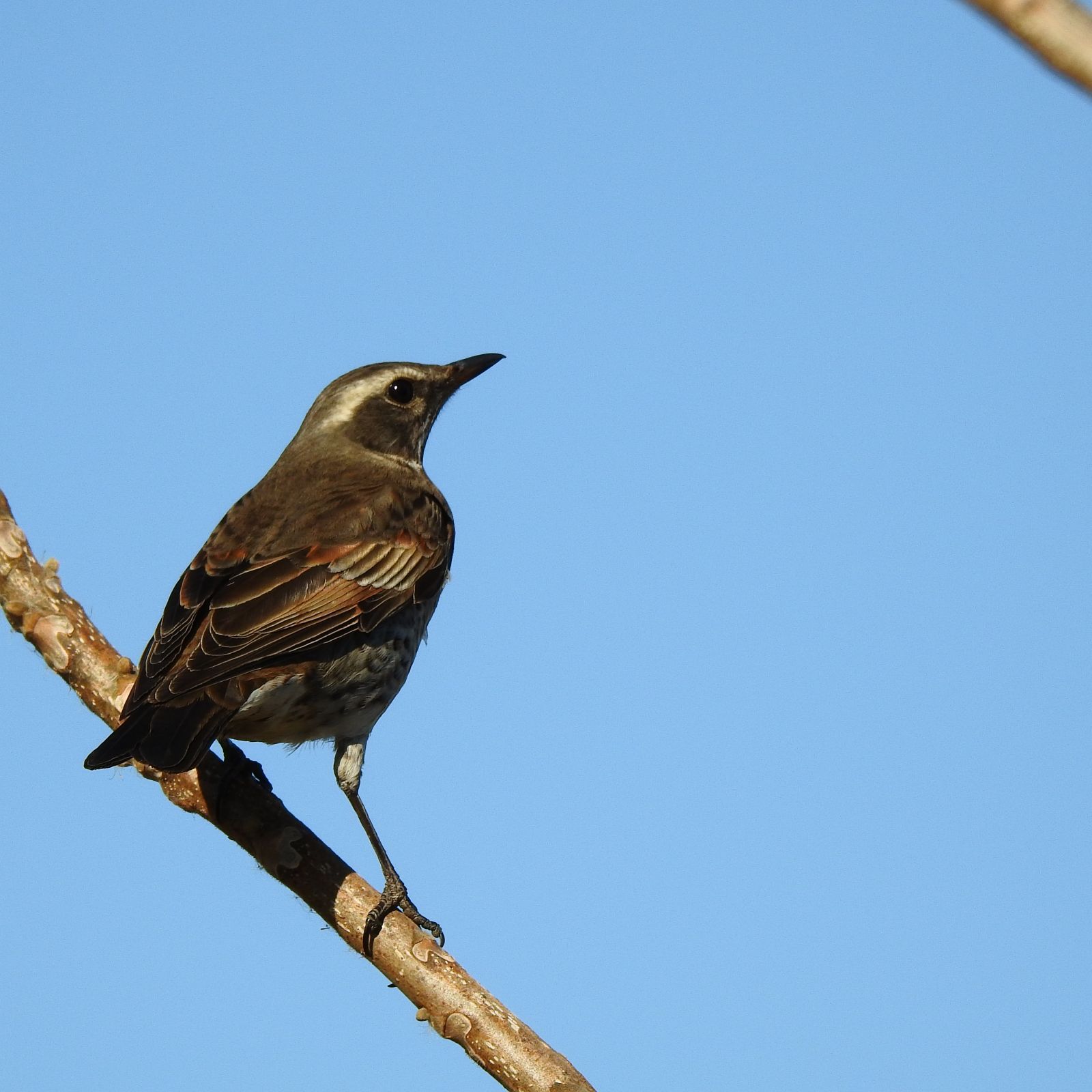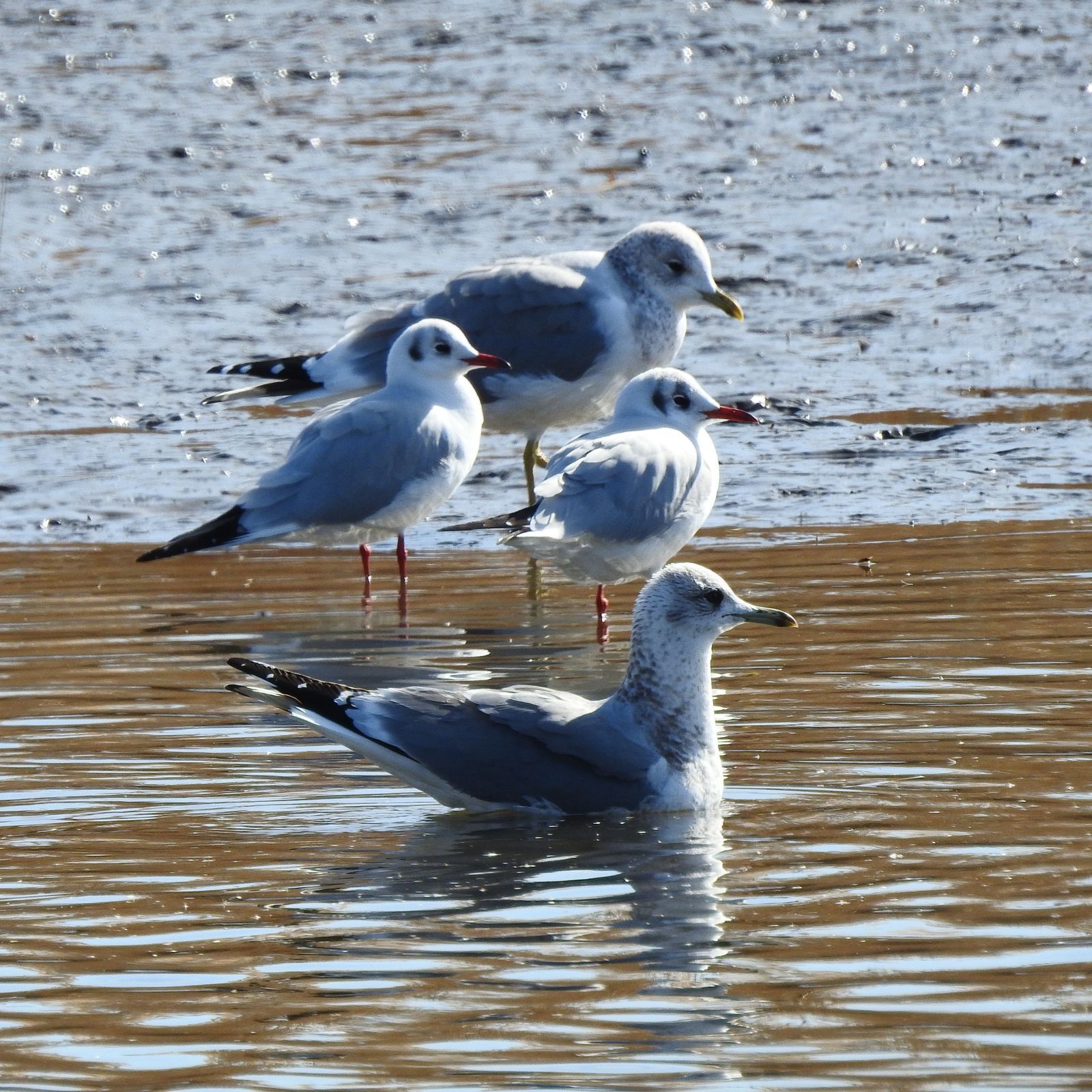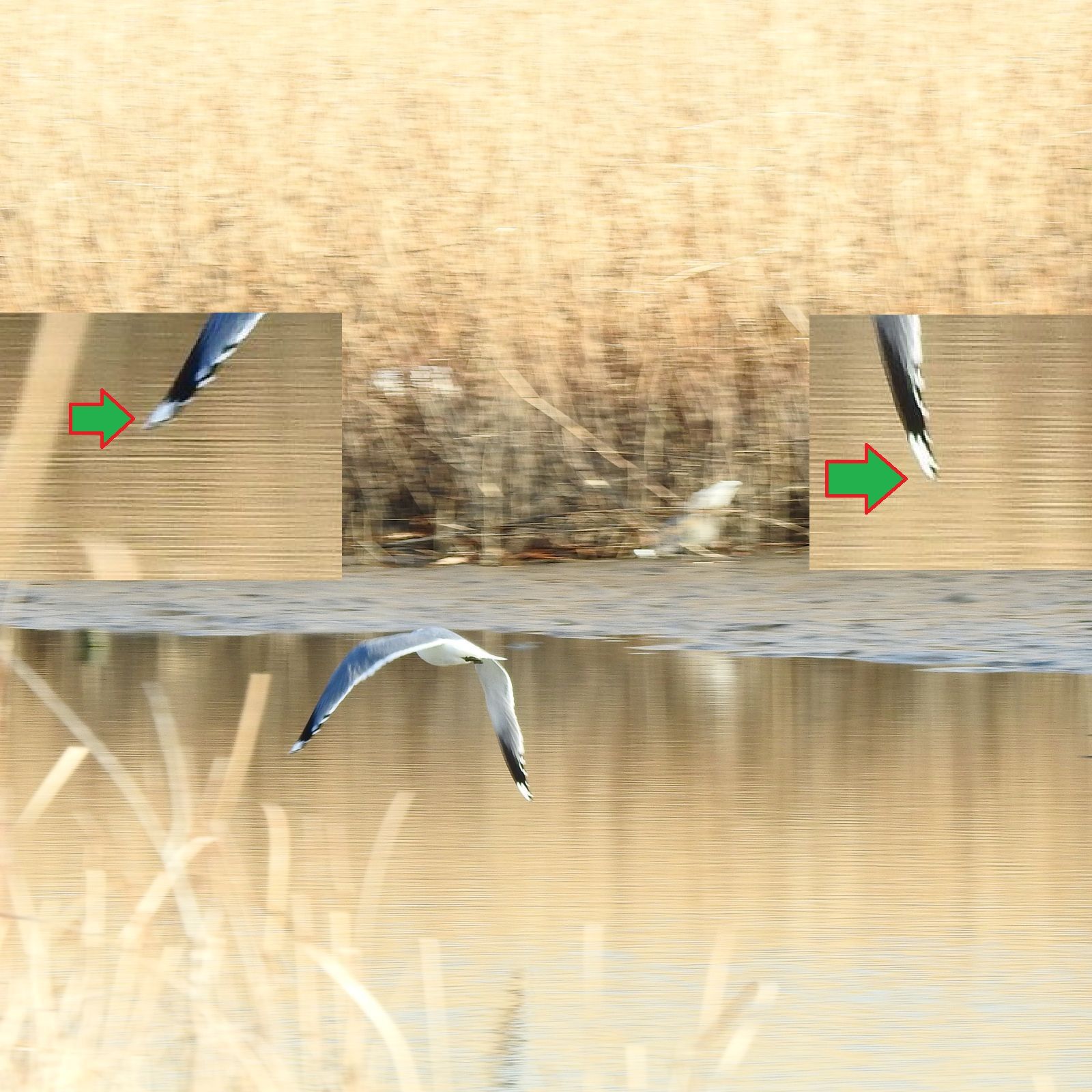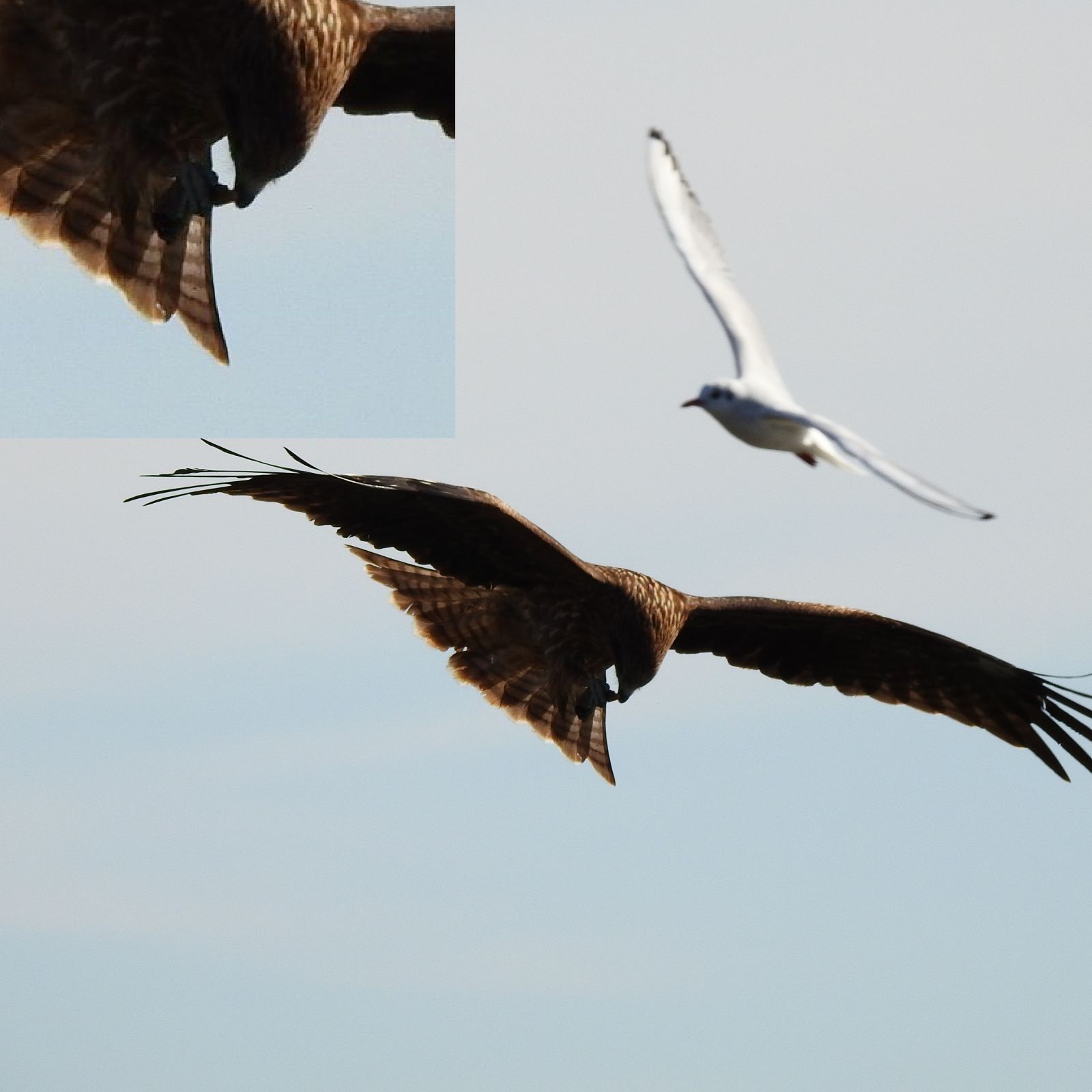 9:21 180 20:38 163 干潮時刻 2:31 32 15:08 95 中潮 最高気温 10℃ 最低気温 4℃ 月齢 19.9 日の出 6:51 日没 16:44 ムクドリ、額に腫瘍があり遠目にハッカチョウかと思えた。 ![]() トビがダイブして狩りを行った。ユリカモメを狙ったように見えたが、持っているのはスズメ大の小鳥。小さな翼は確認できるが種は不明。 ![]() ![]() 黄色い足の大型カモメが2羽。手前のカモメはモンゴルカモメ。 ![]() 一見どちらも同じに見えるが、飛んでいる羽を比べると風切り羽の先端に白斑を持たない。これはモンゴルカモメの特徴だと思う。 ![]() 昨日カリフォルニアカモメとした個体は、風切り羽先端に白斑が入り黒い部分に分断されている。白斑の大きさや形も異なる。 ![]() ツグミ、改めて図鑑で確認すると、雌雄の違いが明確にされていない書籍が多い。雌雄ほぼ同色と記載され混同しそうだ。これは一般的なツムギ、目の下からクチバシにかけて白斑が目立ち、雨覆いの羽の縁の境界線が不明瞭。 ![]() こちらは、昨日ウタツグミを考えた個体だが、体の模様が逆ハート形ではないのでウタツグミの可能性はなくなった。雨覆い縁の境界線が白色で明瞭。背の模様は不明瞭で腰は茶色い。メスの若鳥が最も可能性が高いと思う。でもこの辺の事は、図鑑でしっかり記載してほしいよな。 ![]() ![]() 今日現れたノスリは両風切り羽に欠損が無い個体。これで最低でも3羽のノスリが居る事になる。 ![]()