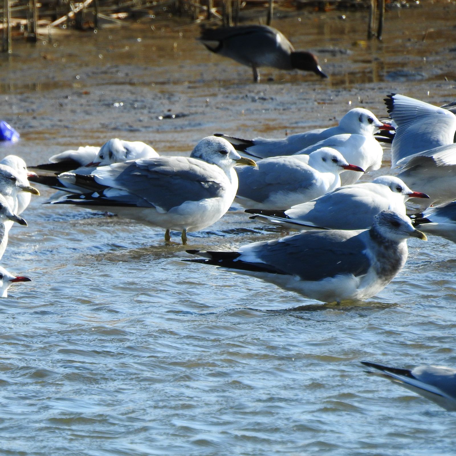 11:29 165 干潮時刻 5:03 91 18:45 79 小潮 最高気温 11℃ 最低気温 3℃ 月齢 22.9 日の出 6:50 日没 16:46 去年の今頃は、何処で見つけられるか?存在すら確認できていなかったヒバリ。このまま越冬しそうだ。 ![]() 六郷のモズ♀は光線の加減で頭の色が変わって見えた。繁殖期が近づいたからかもしれない。 ![]() 普通のカモメを探している。ユリカモメ40㎝に対してカモメは45㎝。どう見ても50㎝は超えているように見える。 ![]() カモメの大きさを調べていると、後方に何やら得体のしれないカモが・・・・ アメリカコガモ♂、数の少ない渡り鳥でコガモの群れに稀に混ざる。大きさはコガモと同大で、羽の付け根の脇付近に白斑は目立つ。 レッドデータ 記載なし。 ![]() ![]() ![]() 比較画像、脇に白斑の無い普通のコガモ。 ![]() 一緒にいるのがメスだとして、観察した印象はコガモのメスに比べ頭部が小顔に見えクチバシもやや長いように感じた。あと頬の線が明瞭なのも特徴か。 ![]() コガモを観察していると、水鳥が一斉に飛び立った。猛禽の気配。 ハヤブサ、風を味方にスピードに乗ってカメラで追うのが難しかった。 ![]() こちらに向かって飛び込んできたが、正面はやはりピントが甘くなる。 ![]() チマチマ小さな写真を撮るのは嫌なので、2000㎜で狙った。こういった横の動きなら何とか写真になる。綺麗な横縞で胸付近にも班があるのでメスの成鳥だろう。
