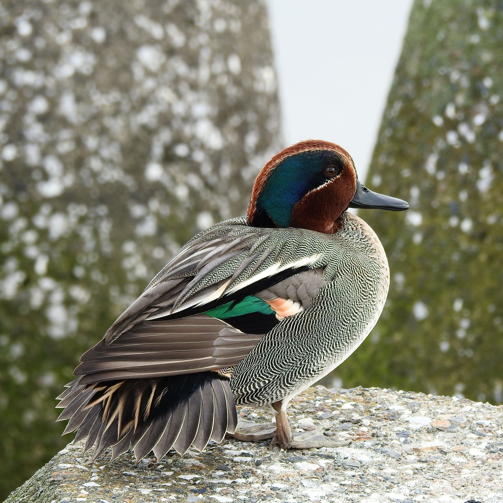 6:55 190 17:44 188 干潮時刻 12:12 95 大潮 最高気温 14℃ 最低気温 6℃ 月齢 1 日の出 6:49 日没 16:54 去年ガス橋付近でトビが営巣し子育ても行った同じ場所で、今年も営巣しそうな雰囲気。 ![]() 六郷橋では3羽のトビが悠々と、ノスリやオオタカやハヤブサでカラスも忙しいから、トビまではマークが回らない。 ![]() 成長段階が違うホシハジロのオス、手前が成鳥で矢印部分の羽が白い、やや褐色になっているのは1年目の若鳥。 ![]() カンムリカイツブリ、割と近くでは久し振り。 ![]() カワセミのオスがちょっと顔を出してくれた。 ![]() コガモの尾羽の構造って、こうやって広げてくれると分かりやすい。色合いも繊細で綺麗だ。 ![]() コガモのメスの成鳥段階も違うので、色合いの濃淡が目立ち始めた。手前の色合いが濃い目に見えるのが繁殖羽の成鳥。 ![]() コイツも、色合いが濃いんだけど雰囲気がちょっと違う。おそらくシマアジのメス。 ![]() 光線の当たり方が変わると、眉班がくっきり見える。 ![]() ハヤブサが割と滞在時間が長めだった。 ![]() ![]() ![]() 本気の戦いではないように見えたが、トビとハヤブサが接触。上空から襲い掛かるハヤブサに逆さに反転して爪とクチバシでとっさに防御した。トビにもこんな動きが出来るんだね。