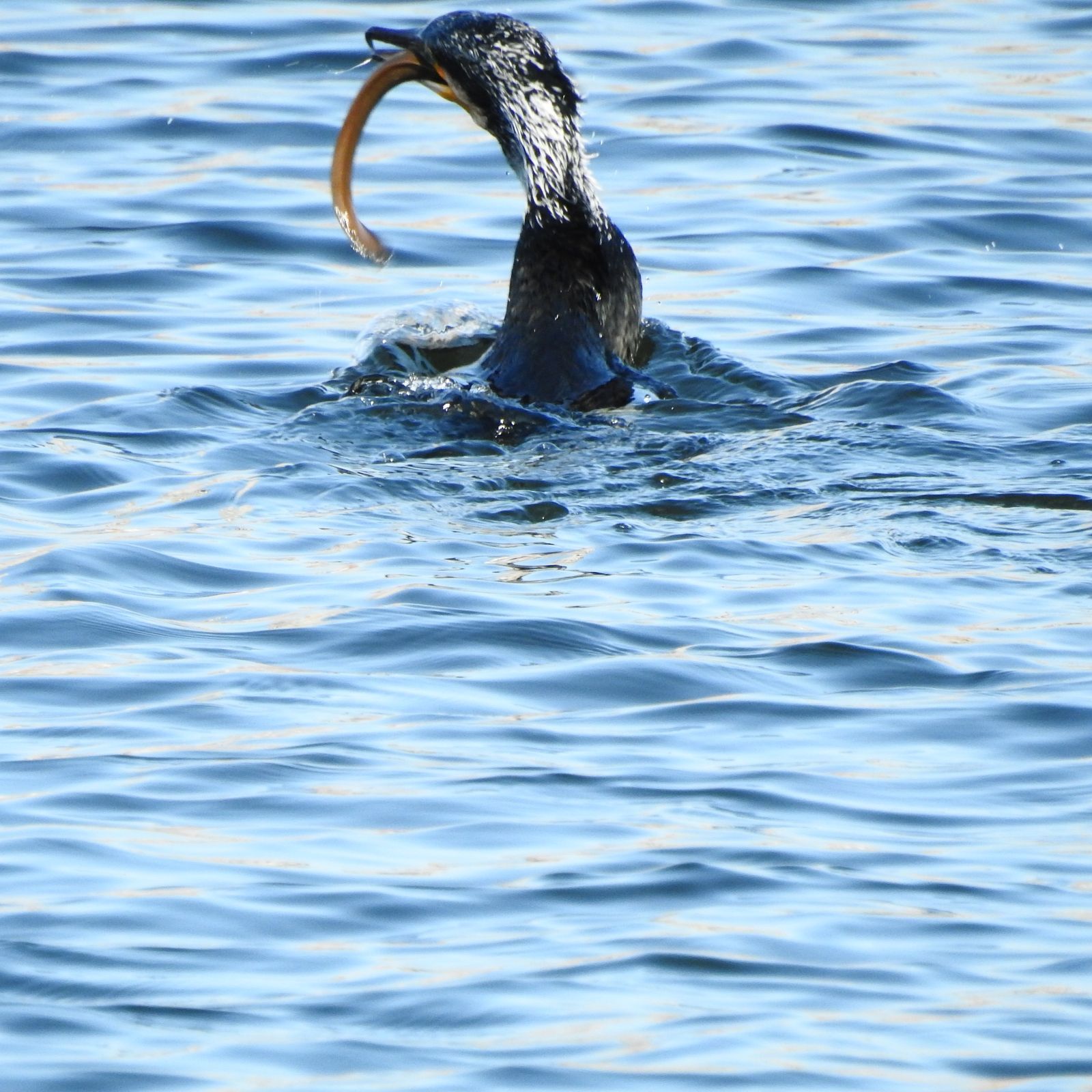 8:10 189 19:32 180 干潮時刻 1:30 21 13:54 84 中潮 最高気温 10℃ 最低気温 4℃ 月齢 4 日の出 6:47 日没 16:57 久し振りに、カワウが鰻と格闘している場面に出くわした。時々水中に没するが、水中で水と一緒に飲み込む行為を行っているようだ。 ![]() ![]() ![]() ![]() 頭からまさに鵜呑みにして、最後は鰻の尾が見える。 ![]() ![]() ノスリは3度飛んだが、いずれも左風切り羽P8の欠損している個体。やや大きめに見えるのでメスかも知れない。 ![]() いつも思う事だが、オオバンの足は不思議な形をしている。 ![]() コジュリン、拡大した矢印部分が灰色に見えるのでコジュリンで間違いない。下の矢印は足環で、過去に捕獲され識別個体とされている鳥。もっと近くで撮影出来たら足環の由来も分かるのだが。 ![]() ホオアカ、上の写真に比べ眉班が不鮮明で、胸から脇にかけての模様も少ない。ホオジロの仲間は群れの中に別の種がいる事が多く、1羽だけ見て種を限定するのは危険だ。 ![]() 誰が言い始めた事なのか?EPT(初列風切り羽の突出枚数)。この個体はモズに見えるんだけど、EPTは7枚で、この特徴はモウコアカモズかセアカモズ。EPT(初列風切り羽の突出枚数)に言及した文献が見つかるといいのだけれど、今のところ詳細不明。 ![]()