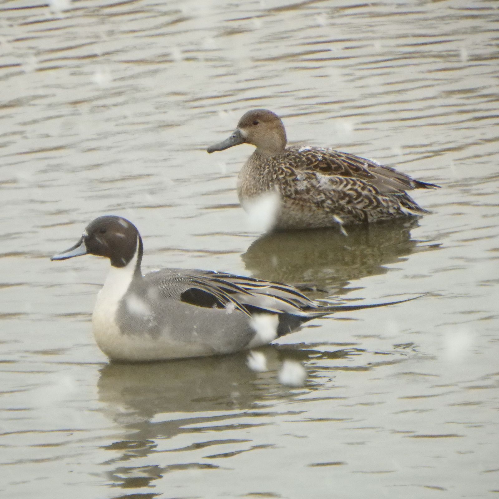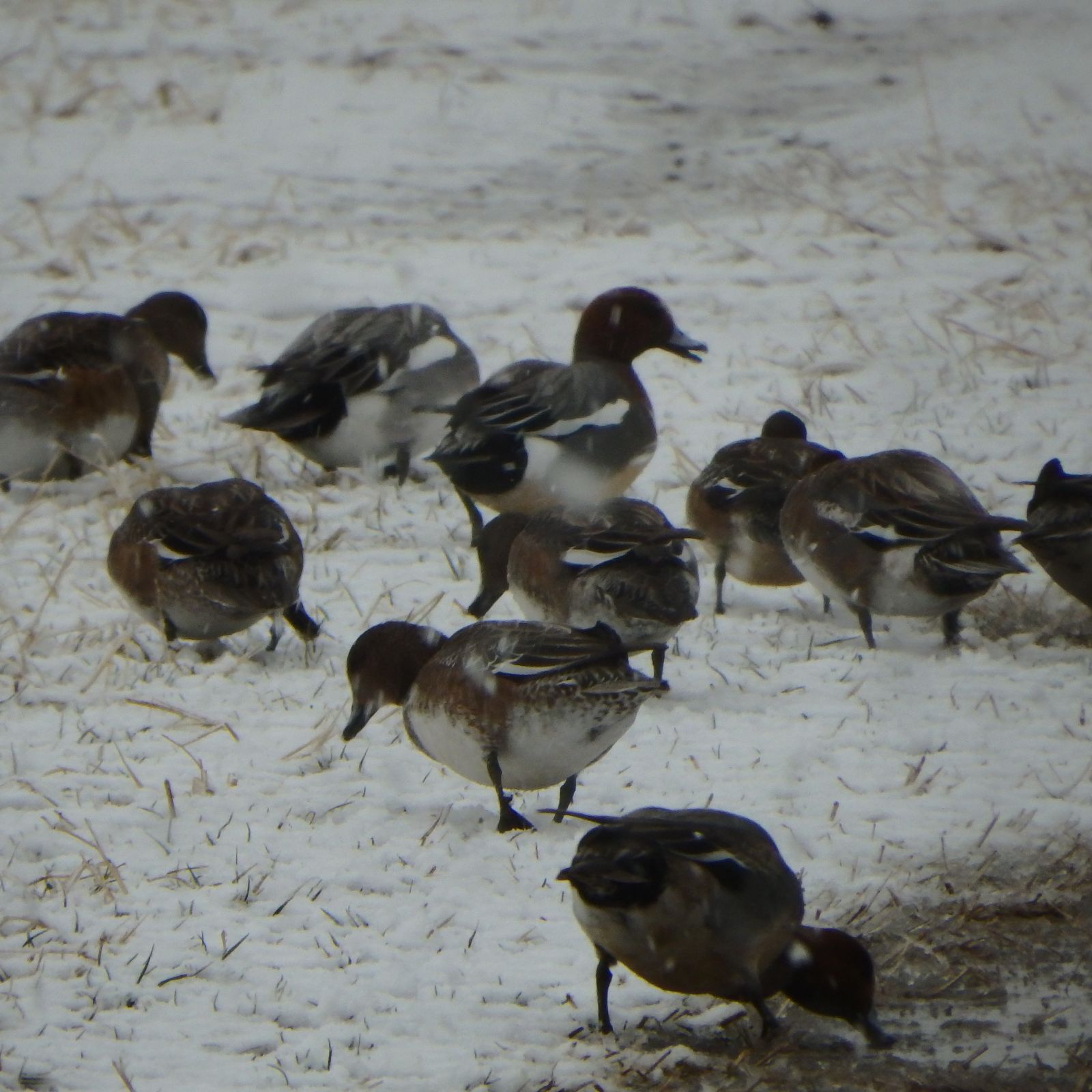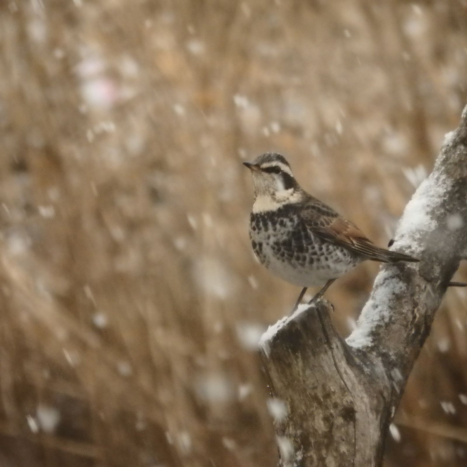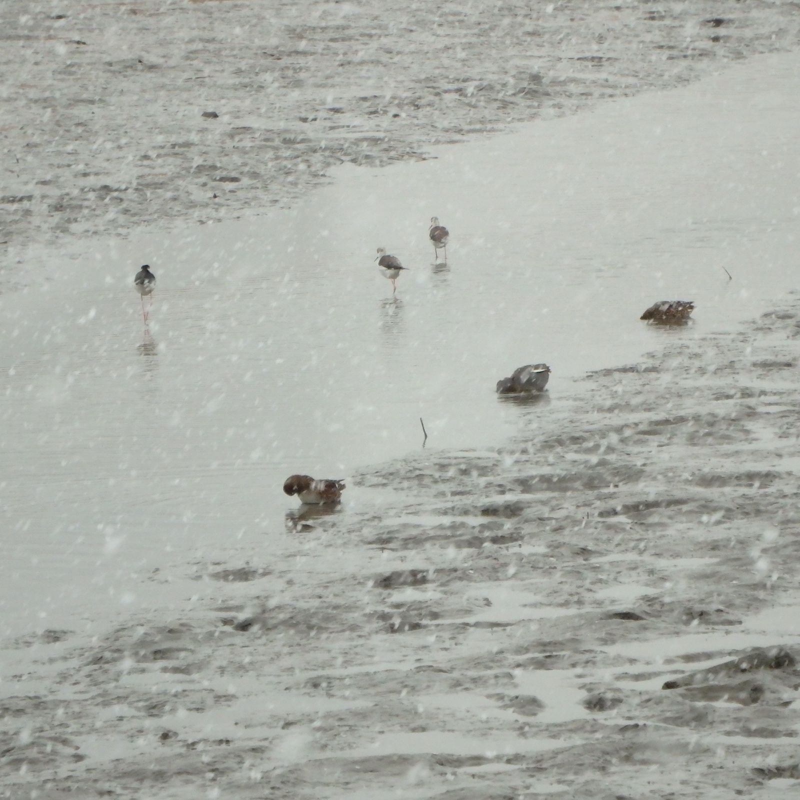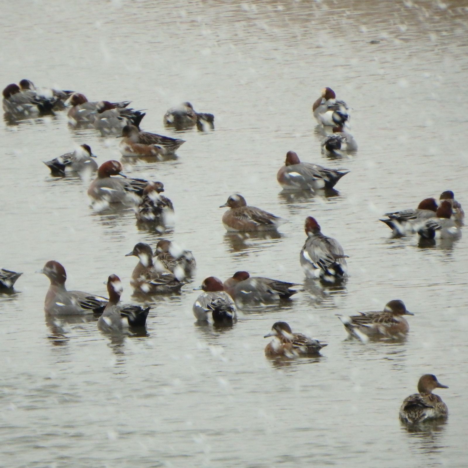 8:39 187 20:16 172 干潮時刻 2:03 33 14:36 81 中潮 最高気温 6℃ 最低気温 -1℃ 月齢 5 日の出 6:47 日没 16:58 出発は午後1時前、最初は鼻に落ちた雪が解ける数秒の感覚を楽しんでいたけど、それも連続するとかなりウザイ。 今日見つけたヒバリの群れは5羽、六郷橋到着前は積雪には至っていなかった。 ![]() ![]() テトラポット付近では、ユリカモメを除いたいつものメンバー。セイタカシギとコガモ。 ![]() ヒドリガモの群れ。 ![]() オオバンの背中に雪が積もっていた。 ![]() いつも見慣れているカモが飛ぶシーンも、こういった雪の中では水墨画の様で美しい。 ![]() オナガガモのペア。 ![]() 撮影中に雪の降り方が本格化した。 ![]() 数百メートル先の視界が効かない。羽田の航空機が欠航している事は事前に知っていて。少し大げさなような気もしたが、この降り方なら仕方ないね。 ![]() ツグミは冬鳥、いたって元気。 ![]() 小1時間で、積雪は2㎝ほどに達した。河川敷で雪の下の草の芽を探すヒドリガモ。 ![]() 東京の風景には見えない。 ![]() 雪の重さのせいか?鳩の飛び方がバタバタと不自然に感じた。 ![]() 単独で飛行するユリカモメ。今日は群れどこにも見当たらない。 ![]() 多摩川大橋の橋の下、雪を避けるハクセキレイ。夜半までには風でこの辺りも雪に埋まりそうだ。 ![]() 同じく雪を避けるスズメ。風で舞う雪の粒は大き目で、ダウンジャケットを引き裂いて羽毛を飛ばしているよう。 ![]() 遠景とオオバン、本当に今年はオオバンの数が多い。