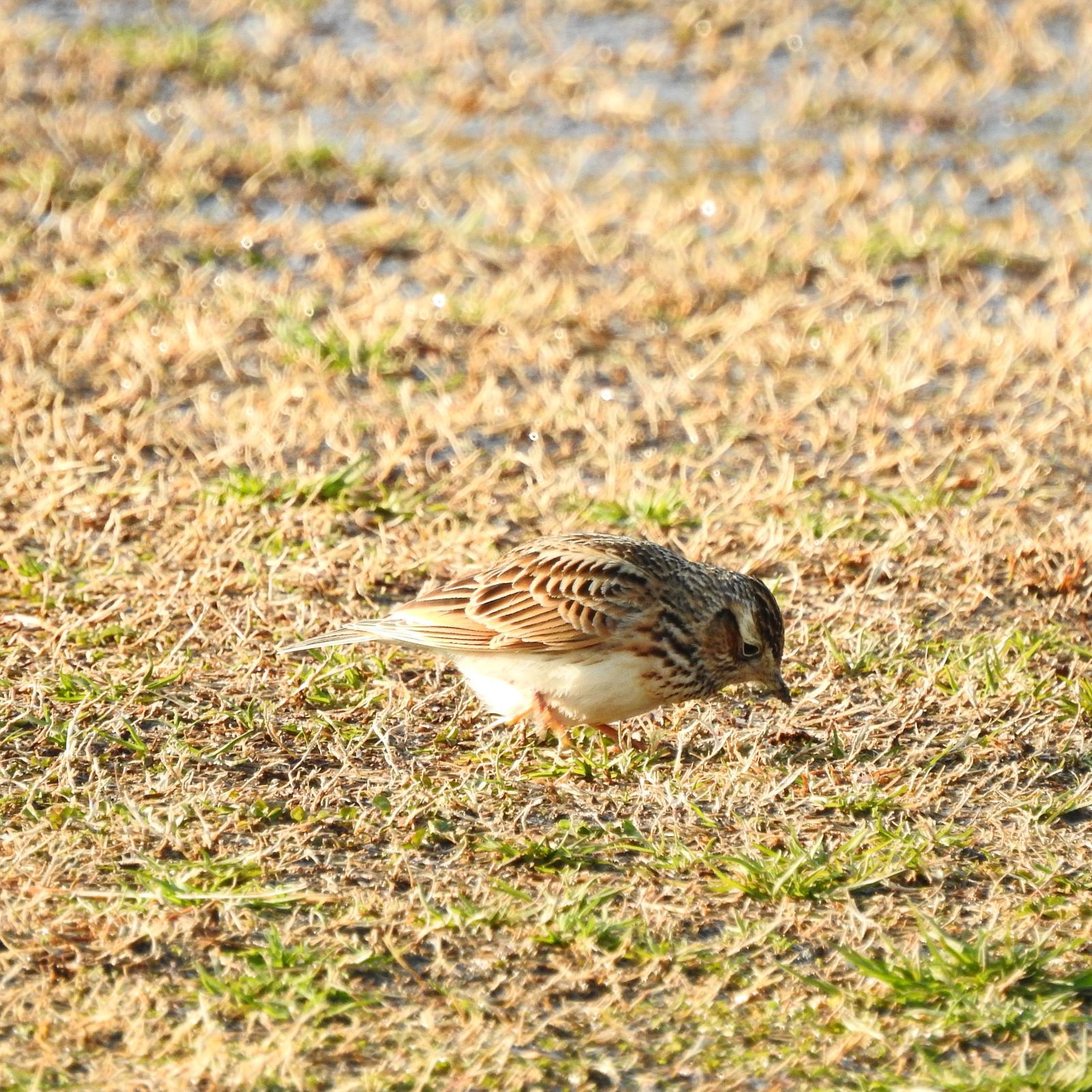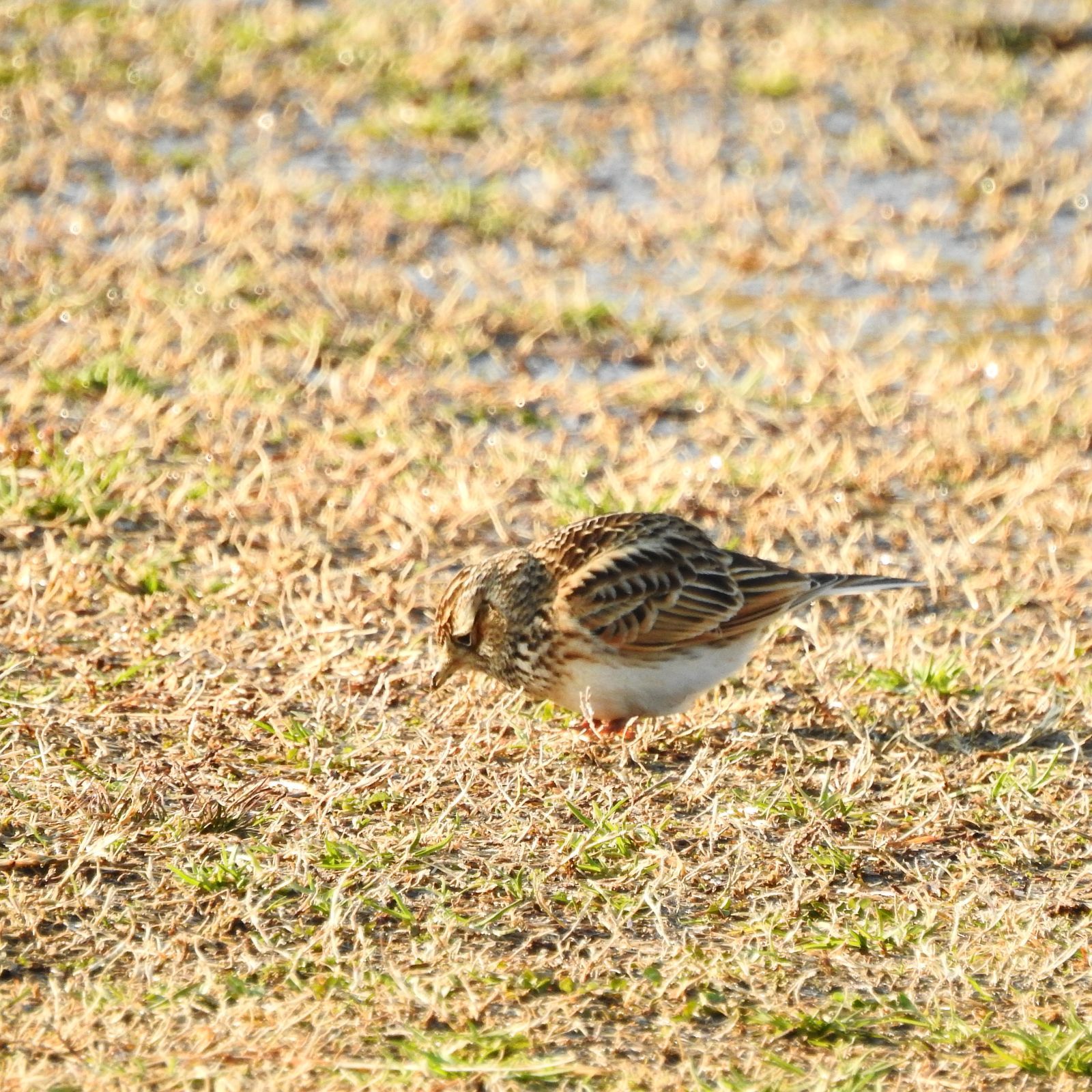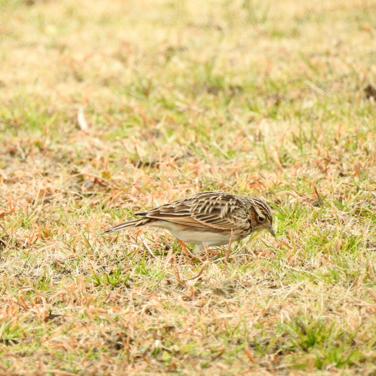 日本の野鳥650 P520のタイワンヒバリが最も類似するが、観察例は沖縄と与那国で数例。 2羽いて、これは遠目でスズメの様なズングリした体系に見える多分メス。 冠羽をよく逆立てるのは多分オス。 比較画像は20日に15羽の群れでいたヒバリ。色合いが淡いし体型がスマートで胸の模様は少なく薄い。 夕方単独で行動している個体は色合いは似てるけど体型がスマート。
