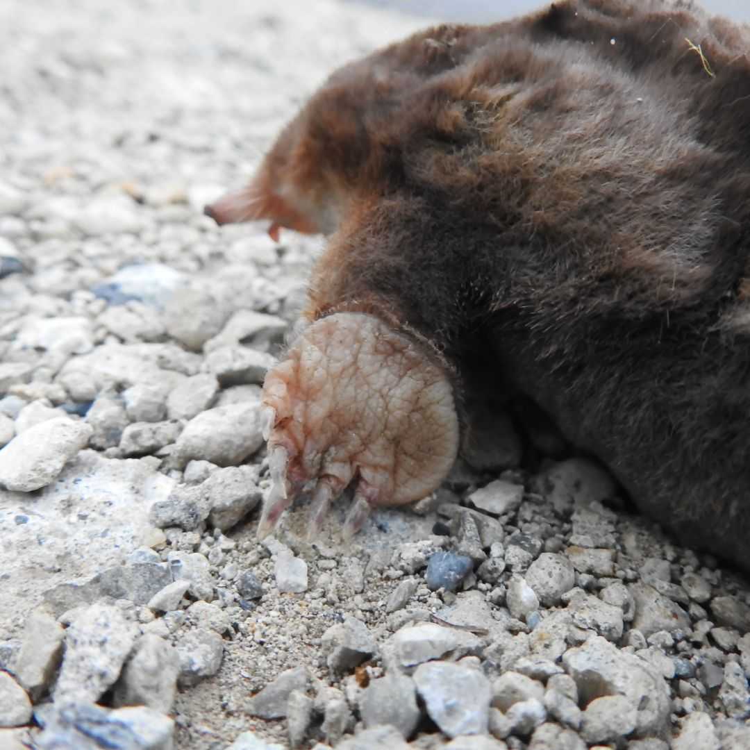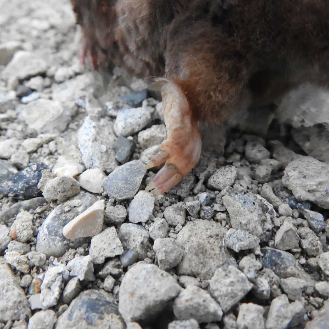 ![]() 体長は12㎝強、尾を入れて15㎝程度。東日本に多く分布するアズマモグラだと思う。 ![]() 顔正面。 ![]() 前足。 ![]() 後ろ足。穴を掘るための爪の発達が目立つ。