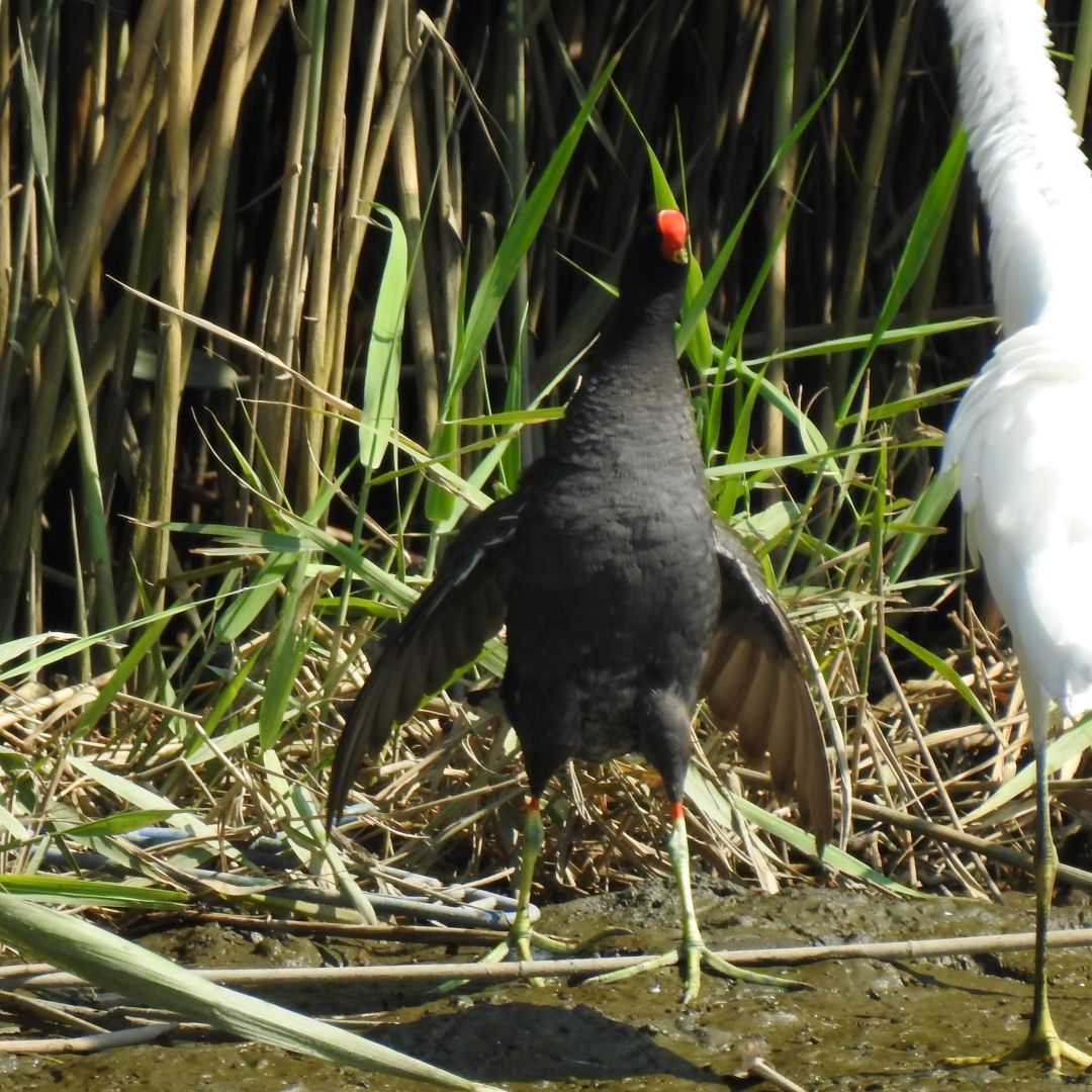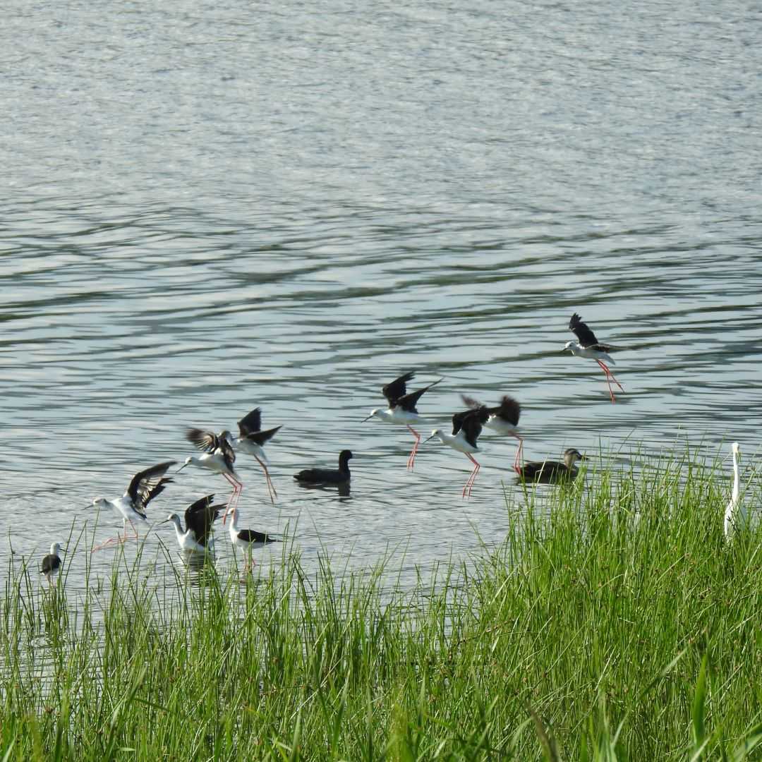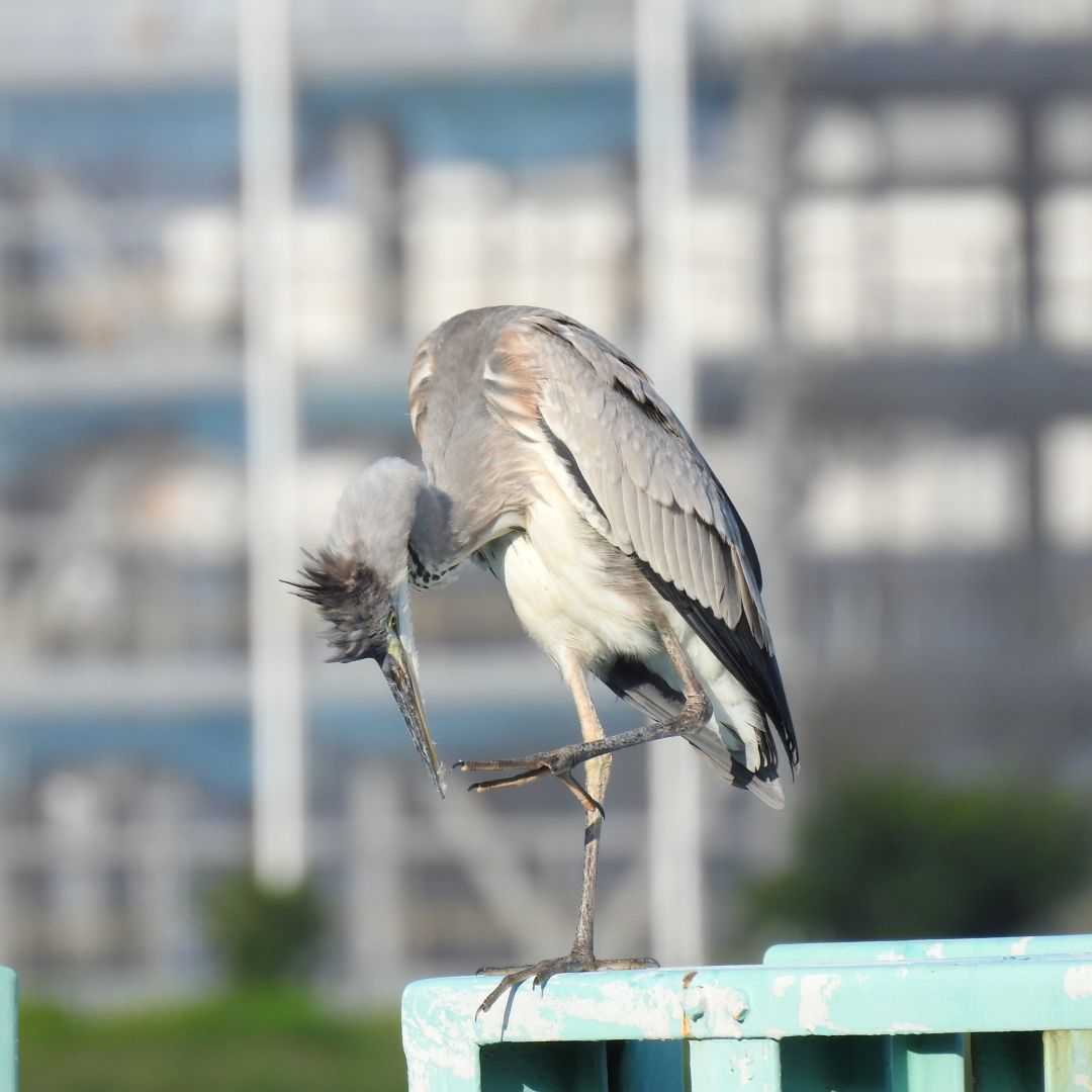 干潮時刻 3:55 82 15:38 87 小潮 最高気温 31℃ 最低気温 26℃ 日出 4:48 日没 18:46 月齢 21.1 暑さを避けるため、4:15夜明け前に出発。 セイタカシギ。夜明けまだ光の乏しい時間に5羽見つけた。1家族で3羽の幼鳥を連れていた。 ![]() 別のグループの雛2羽。野鳥公園の雛鳥より1週間から10日程度先に生まれた様で成長が早く、親鳥と一緒によく飛んでいた。 ![]() この幼鳥は前のグループの個体より大人びて見える。 ![]() これらのグループと合わせ、総数27羽のセイタカシギが帰還した。 ![]() オオバン。 ![]() ウミネコ。今日はオオセグロカモメは見かけなかった。 ![]() キアシシギ。大師橋下流域のシギの要所には全部釣り人が入ってしまい群れが散っていた。キアシシギの他飛んでいるチュウシャクシギも1羽見かけた。 ![]() アオサギ幼鳥。 ![]() チュウサギが1羽。コサギは多く32羽の群れがいた。 ![]() 大師橋から上流では今季遠く1度しか見かけていなかったコアジサシ。今日は頭上3mと至近距離を飛んでくれた。ただし1羽のみ。 ![]() 久しぶりのホシゴイ(ゴイサギ幼鳥)。 ![]() イソシギ、嘴が短く別種を疑ったが幼鳥のようだ。 ![]() バンの親子。 ![]() 雛鳥は頭頂部の毛が薄い。 ![]() 雛鳥に近づいたコサギを牽制する親鳥、一歩も引かない気合を感じた。