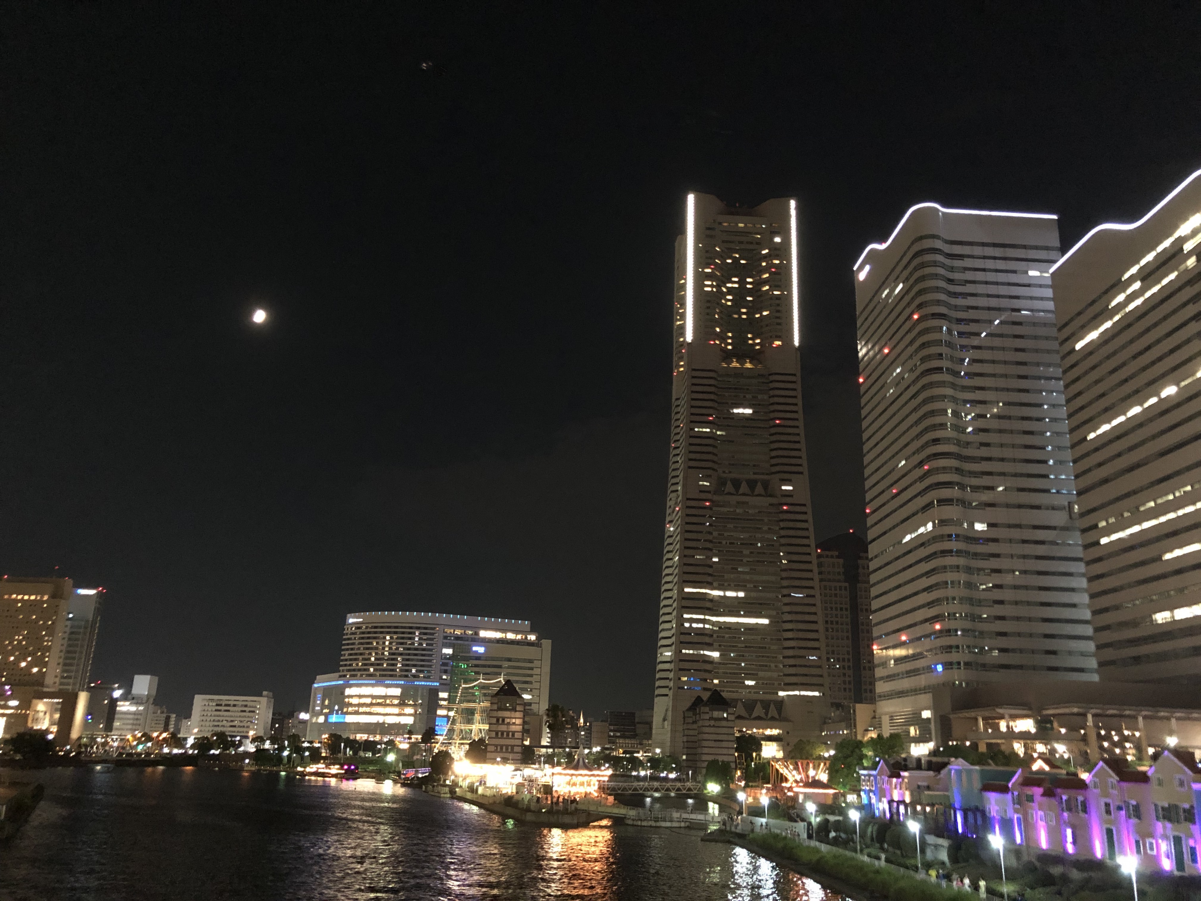無事にステッカーをもらってから、ついでにワールドポーターズへ行きたいというので外に出たところで、ちょうどコスモクロックがスライムになる時間直前だったため、眺めてからにしました。