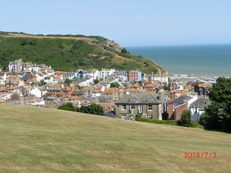 ![]() ■2018.7.3(火) ![]() ■「Hastings(ヘイスティングス)」■ 伝統的な漁港と美しい景観を併せ持つヘイスティングスは、ロンドンからの日帰り旅行に最適な場所です。 歴史的には1066年に起こった「ヘイスティングスの戦い」の舞台として知られています。アングロ・サクソンの王であったエドワード懺悔王の支配下にあった当時のイングランドでしたが、王の死後、その妻の兄に当たるハロルド2世が即位しました。 そのことを不服とし、兵を挙げたのがエドワードの従甥であった ウィリアム1世。 勝利を収めたウィリアムがノルマン朝を開き、現在のイギリス王室の開祖となりました。 ![]() (▲対岸のフランスからの遠足なのか フランス語で語り合っていた子供たち。) 特筆すべきは、王となったウィリアムがノルマン人(フランス人)であったということ。 その後ノルマン人はアングロ・サクソン人に同化されてゆきますが、 イギリス王室がフランス人の手によって開かれたという史実に驚かされます。 ![]() そのウィリアム1世が建設したとされるのが「Hastings Castle(ヘイスティングス城)」。 ![]() 現在では城跡を残すのみですが、その崩れかけた姿に寂れた味わいがあります。 ![]() 小高い丘の上に建つ城跡は、絶好のビューポイント。 お天気のよい日には英仏海峡を見渡せるほか、美しいビーチとかわいらしい町並みが一望できます。 ![]() ![]() 歴史を刻む廃墟と青い海のコントラスト。 どの角度をとってみてもフォトジェニックであることに間違いありません。 ![]() ●美しいビーチと町並みが魅力の「ヘイスティングス」 ![]() ▲丘の上の広場には野鳥のために水を用意している。 ![]() 丘の上から見ると街に置いた車が小さく見える。 ![]() 高いところにある城跡には、まちからエレベーター(リフト)が出ている。 ![]() ![]() ![]() 古くて小さなリフトは、レトロ感満載。 ![]() 中も木造で、これまたレトロ。 ![]() ヘイスティングス城からも見下ろせる「Hastings Pier(ヘイスティングス・ピア)」は、19世紀に建てられたという桟橋。 落雷や火災による被害により再建され、現在のものは2016年より使用されています。 ![]() ●港町で堪能する本場の味「フィッシュ&チップス」 ![]() 港町での楽しみのひとつは、なんと言ってもおいしいシーフードを味わうこと。 お城の近くでフィッシュ&チップスを買って持ち帰り夕食とした。 ![]() 17:00 「ル・シャトー・ジャポネ」に着く。 チェックイン。車は、ホテル前の路上駐車。 ![]() 1Fの2号室。部屋は、かなり年代が経っている様子。 バスタブがあった。温水式の便器は、今回、初めて見た。 にほんブログ村 ・・・・・・・・・・・・・・・・