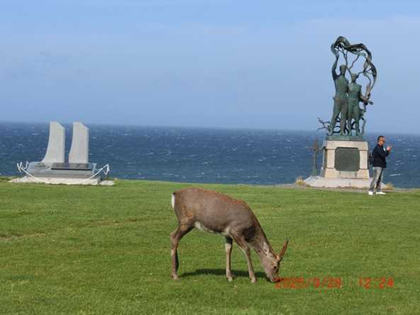 ■2025.9.28(日)-1日本の最北端にやってきた。![]() まず、野寒布(ノシャップ)岬。 ここからは、利尻島、礼文島も近い。■礼文島:出会いと別れの踊るユースホステル・桃岩荘■ ▲「イルカのモニュメント」が設置されているが、これはイルカが宗谷海峡を通過したという昔話に基づいたもの。今回の旅は、派手な観光地は、あまり無いが、人のいない北の岬は、寂しすぎる。 ▲稚内灯台ノシャップ岬のシンボル的存在であるノッポな灯台は、紅白の鮮やかなツートンカラーが特徴。高さは42.7メートルで、北海道では一番高い灯台であり、全国では島根県日御碕(ひのみさき)灯台に次いで2番目の高さを誇る。![]() 野寒布岬(ノシャップ)で台風なみの強風を体感した後、一路、宗谷岬へ向かう。◆◆◆◆◆◆◆◆◆◆◆◆◆◆◆◆◆◆◆◆◆◆◆◆◆ ![]() 宗谷岬、キタ━━━━(゚∀゚)━━━━!! 宗谷岬(そうやみさき)は、北海道稚内市にある岬・地名。 「宗谷」の語源はアイヌ語の「ソー・ヤ(so-ya)(磯岩の岸)である。 日本の本土における最北端の地であり、私人(一般人)が通常訪れることのできる最北端の地になっている。 宗谷岬からロシア連邦の実効支配地である樺太(サハリン島)最南端の西能登呂岬(ロシア名:クリリオン岬 )までは約43 kmの距離がある。晴れた日には樺太の姿を見ることができる。 ![]() 周辺を宗谷岬公園として整備しており、日本最北端の地碑はじめとする記念碑、祈念碑、慰霊碑などが点在している。 日本最北端の地と記された三角のモニュメントで、観光客が写真を撮っていた。 ![]() その近くで鹿が草を食んでいる。 ![]() その鹿を観光客がカメラで撮っている。 奇跡の海峡突破を成し遂げ、間宮海峡を発見した男、間宮林蔵の像もサハリンの方向を向いて立っている。 はだれに 暗く緑する宗谷岬の たゝずみと北はま蒼に うち睡るサガレン島の東尾や 宮澤賢治詠![]() そらの微光にそゝがれて いま明け渡る甲板は 綱具やしろきライフブイ あやしく黄ばむ排気筒 はだれに暗く緑する 宗谷岬のたゝずみと 北はま蒼にうち睡る サガレン島の東尾や 黒き葡萄の色なして 雲いとひくく垂れたるに 鉛の水のはてははや 朱金一 … 宮澤賢治詠*宮沢賢治は、出来たばかりの航路を利用してサハリンに渡った。*サガレンとはサハリン。 ![]() ■宗谷灯台■北海道では■納沙布岬灯台(明治7年初点灯/根室市)■日和山灯台(明治16年初点灯/小樽市)に次いで3番目に古い灯台で、「日本の灯台50選」にも選定されています。紅白横線塗り、四角形コンクリート造りというユニークなフォルムにも注目を。 ![]() ■9月26日(金)■宗谷岬から襟裳岬へ/留萌市(るもいし)/北海道あるある■ ■9月27日(土)-1■映画「駅 STATION」の舞台:増毛■ ■9月27日(土)-2■北海道あるある/鰊番屋/風車街道をゆく■ お気に入りの記事を「いいね!」で応援しよう