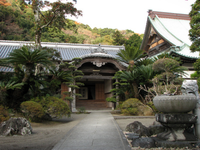 龍鼎山 養賢寺専門道場残念ながらこちらは立ち入り禁止になっていました。龍鼎山養賢寺専門道場(りゅうていざんようけんじせんもんどうじょう)(以下現地案内板より) この寺は、慶長10年(1605年)佐伯藩初代毛利高政公が鶴屋城の創築及び城下町づくりと時を同じくして、毛利家の香華院(菩提寺)として創建したもので、開山第一祖は京都妙心寺から大観慈光禅師を招き、臨済宗妙心寺派に属する。 虚空高々と銅瓦葺きの大屋根がそびえる本堂、その須弥壇には本尊釈迦牟尼仏が拝され、その隣には藩祖高政公をはじめ、歴代藩主の位牌が並び、大名の香華院としての森厳さを示している。 本堂につづく閑静な大書院、大屋根そそり建つ古風な庫裡、方桁造りの位牌堂、江湖専門道場としての禅堂、白堊塗込めの経堂など伽藍うち並び、四百年近い歴史のたたずまいを深々と示している。 本堂の裏手一段高いところに、藩祖高政の霊廟をはじめ、歴代藩主の墓塔立ち並ぶ毛利家の墓所がある。 なお、この山際通り一帯は「歴史と文学のみち」として整備し、歴史的環境保存地区に指定されています。 佐伯市教育委員会