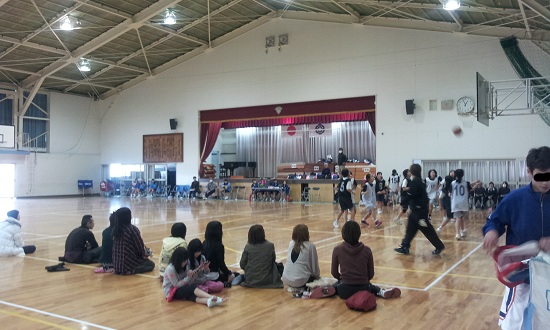 今日明日はホームが会場。過去を振り返ってみると、ホームでは負けても記憶に残る好ゲームが多かったナ・・・3年生は最後の大会だ、力を出し切れ!!会場の第一試合をステージで観戦。志榛の雄、H原中が焼津のH津中と接戦だ。終始極差のリードを焼津が保つ展開。H原中はミニバス全国大会で、1点差負け準優勝経験の2年生を温存。彼らが出れば何ら苦戦することなく逆転勝利するが、最終ピリオドになっても動く気配が無い。実は試合終盤に、3年生から「絶対に勝つからこのままのメンバーでやらせてくれ!」と直訴されていたそうだ。中学バスケ最後の大会、何としてでも自分達の軌跡を残したい気持ちの表れだろう。残り14秒で2点差。H原中キャプテンのフリースロー。これまでことごとく決めてきたスローだが、1本目を落とし、2本目を決めて1点差。ここで焼津はスローインを痛恨のミス。残り12秒で再びH原中ボール。タイムアウトを取って念入りに最終プレーの確認。時計は動き始めるが、思うようにボール運びが出来ず、最後のチャンスをこちらもパスミスで消失。。そのままタイムアップ。。。もう勝つしか無くなったH原中は、次戦をスタートから2年生フル稼働。対戦相手は、、ウチだった。。(TT) 救世主の横浜ガードはケガでベンチスタート。時間が進むに連れて点差は広がるばかり。こちらも最終ピリオドになって「このままで終わりたくない!」と横浜ガードから直訴され、監督も已む無く出場許可。加えて青ざめた顔した3年生を下ろし、下手だが威勢の良い2年生メンバーに変更。全く別チームとなった我がチームは僅かな得点を積み上げるも、益々本気にさせてしまったH原中の猛攻を喰らう。終わってみれば120点差を付けられて終了。。。これだけの点差を付けられ、決勝トーナメント出場は果てしなく遠のいてしまったが、ストレッチをしながらキャプテンは「明日は上から当たって大差で勝つしかない!」と、チームメイトに声を掛けている。そうだね、まだ敗退が決まった訳じゃないんだから、明日はもっと頑張ろうネ!!