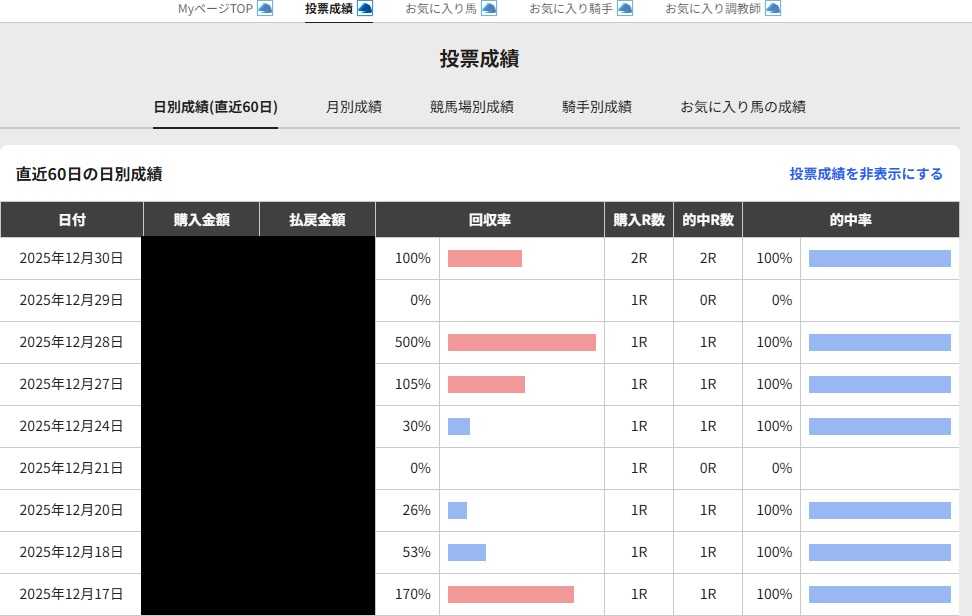 お座敷ちゃんねるOFMA班のまーなです。そもそも競馬はギャンブルと言われる方には疎遠な研究ですが、競馬で複利の効果をもたらすには・・・という研究が私の2025年、2026年の課題となりそうです。①富の法則 + ②ことりちゃんの福利馬券(研究中) を合わせることで単利馬券法から複利馬券法に変更できるのか?を研究していきます。下記の写真が最近のことりちゃんの買い方(買目)による収支です。上記9日間(10レース)の結果を断片的ですが材料として計算しました。10レースでの複利効果は1.08%ベット比率が一定ではない(まばら)でしたが平均として1400円とします。1600円の日(ハズレ)だったので若干は回収率(利回り)は上がります。投資金額 14,000円返還金額 15,120円 #競馬で複利を今年は更に研究していこうと思っています。富の法則についてはターフのカノジョ第1巻三原雫編の巻末のおまけページで記載されています。直売価格(値引きあり)でお求めは X 旧Twitter(@ozasiki_ch)のDM等または各書店やamazon・楽天ブックス等でお求めいただけます。競馬複利の力で更なる収益を目指します。まーな