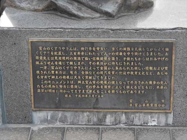 急遽取引先を訪れたので、続日本100名城の富山城へは行けず宿泊ホテルへ向かった。 8月18日(月) 17:00 神通川に架かる神通大橋。 神通川左岸の県道7号線(富山八尾線)を北上(下流側)し神通大橋西詰交差点。 富山駅へはこの交差点を右折。 同交差点から東方向を望む、空気が乾燥していると立山連峰が見えるのだが。 神通大橋は、富山駅西側の富山市神通町と富山市の五福地域を結ぶ全長425メートルの橋で、 神通川の上流側と下流側に1本ずつ架かっている。 奇麗に塗装されていたが老朽化している神通大橋について、富山市は上流側の橋の架け替 え工事を2027年度以降に始めると。 上流側は1956年、下流側は1969年に完成し、特に上流側の老朽化が課題となっている。 架け替え工事を行うのは上流側で、新たに歩道を設けて幅を現在の7メートルから12メート ルに広げる。工事期間中は渋滞緩和のため下流側での対面通行を検討していると。 17:20 システムパーク新桜町No2駐車場 所在地:富山県富山市新桜町8-2 ホテルに駐車場がないのでホテルから約200メートルにある駐車場へ。 料金は、17:00~8:00 平日500円と安い。 ホテルリブマックス富山 所在地:富山県富山市新桜町5-2 宿泊ホテルはネット「富山の安いホテル」から検索予約、5,824円であった。 ひまわり通り(県道208号線)の富山中央警察署前交差点に位置し富山駅まで徒歩約5分。 ホテルロビー 朝食は提供していないと。インバウンド客も宿泊するようで外国人スタッフがいた。 シングルルーム。 ホテルの西側にあった「NHK富山放送局」。 令和4年(2022)2月14日、富山中央警察署の旧庁舎跡地に竣工した。 そのため交差点名はかつての「富山中央警察署前」になっているようだ。 局の前にテレビカメラと数名の人が。 ズームアップするとワイシャツ姿の気象予報士と思われる人と、大きな温度計。 この日は猛暑日で35℃越えで富山は全国のトップ5だったか。 更にズームアップ。 温度計に馴染みの「きょうの最高」と。 飲み友のYさんとの待ち合わせで富山駅前へ。 陽が沈んできたがまだ暑さが残っていた。 CiC前面広場から富山駅舎を見る。 富山駅の南側に位置するCiC前面広場及びα-1前面広場は、噴水広場になっており道路区域 の一部を広場として一般開放している。 退社時間帯で県庁所在地だけに人通りが多かった。 CiC前面広場に建つ「時計塔」。 プレートに、 「旧制富山高等学校創立七十周年に当たり、多感な青春を送りし県都富山市に感謝の意を 表するとともに母校に学びし歓びと誇りを永遠に伝えるためにここに寮歌『丘のまどい に』のメロディーを奏でる時計塔を贈るものである。 丘のまどいにあくがれて ふるさと遠くわかき子が 青冥寮にみつとせの 夢みる多き旅枕 平成五年十月十日 旧制富山高等学校 同窓会」。 『薬都とやま』 1⃣ 富山市売薬資料館 「富山市売薬資料館」では、行商の用具や製薬に使われた道具、売薬版画等のみやげ品 ほか、富山売薬の歴史を伝える様々な資料を展示。収蔵資料は約6,000点で、その一 部は国重要有形民俗文化財の指定を受けています。また、別館の旧密田家土蔵は江戸 時代中期に創建された売薬商家の土蔵を移築したもので、1階では売薬版画等の企画 展示を行っています。 2⃣ 池田屋安兵衛商店 和漢薬薬種商「池田屋安兵衛商店」は老舗の風格を今も残し、薬都とやまの伝統を受け 継いでいます。看板に書かれた「反魂胆」は江戸時代から伝わる胃痛や腹痛に効果が ある丸薬の名称です。 店内ではこの丸薬作りの無料体験ができるほか、2階のレストランでは薬膳ランチや野 草茶、自家製の野草アイスクリームをお楽しみいただけます。 CiC前面広場及びα-1前面広場には複数枚の観光案内板が立っていた。 環境省かおり 風景100選 【富山の和漢薬のかおり】 我が国には、次の世代に引き継ぎたい素晴らしい環境がたくさんあり、そこにはいつも素晴 らしいかおりが感じられます。 そのようなかおりのある豊かな環境を守り育てる地域の取り組みを応援するために、環境省 は特に優れたもの100地点を「かおり風景100選」として平成13年10月30日に選定しました。 その100選に「富山の和漢薬のかおり」が認定(川口順子環境大臣)されました。 富山市では、これをきっかけにして歴史や文化に根ざした質の高い県境づくりに市民の皆さ んとともに取り組んでいきたいと考えています。 富山市環境部 富山のくすり屋さん像 広場の噴水横に立っている平成4年(1992)建造のモニュメント。 台座に、 富山のくすりやさんは、柳行李を背負い、多くの困難を克服しながらよく効くくすりを配 置し、三百年余にわたって人々の健康を守り続けてきました。お得意先とは先用後利の商 法で強い信頼関係を築き、子供たちからはおみやげの紙ふうせんを通じて親しまれ、その 来訪が心待ちにされました。 一方、富山のくすりやさんによって全国から集められた新しい情報および蓄積された資本 力は、電力、金融などの近代産業の創設や教育文化など