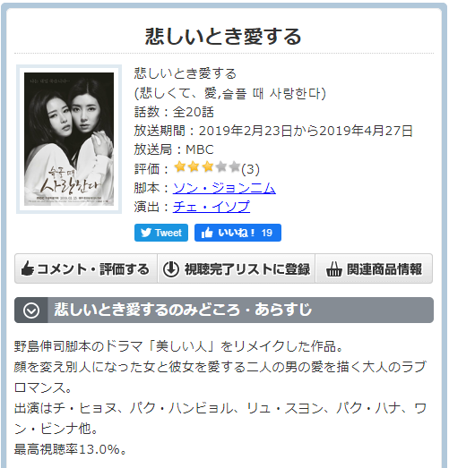 いや もぅ最近は題名も覚えずに見てマス韓ドラも 日本のドラマも😅今日から始まった「ボーンアゲイン」も見てみたら あっ…これ見たわ💦ってことで即、予約取り消しボーンアゲイン~運命のトライアングル~(Born Again,본어게인)話数:全16話放送期間:2020年4月20日から2020年6月9日放送局KBS前世と現世で絡み合う3人の男女の永遠の愛を描くミステリアスラブストーリー。出演はチャン・ギヨン、チン・セヨン、イ・スヒョクほか。最高視聴率4.1%。この頃の韓ドラは時間を行ったり来たりするのが多くって韓ドラって結構そういう事あるよね二番煎じ…じゃないけど さ特にこのドラマは 生まれ変わりの時間が短くって今がいつなのか??よく理解できないまま見てたって感じ😂とりあえずあたしはイスヒョクssiの方が好き♡ってことだけは間違いない(笑)それにしてもイマドキ Netflix見てないあたしは完全 浦島太郎だね🤭🤭にほんブログ村参加中です (*ᴗ͈ˬᴗ͈)⁾⁾⁾
