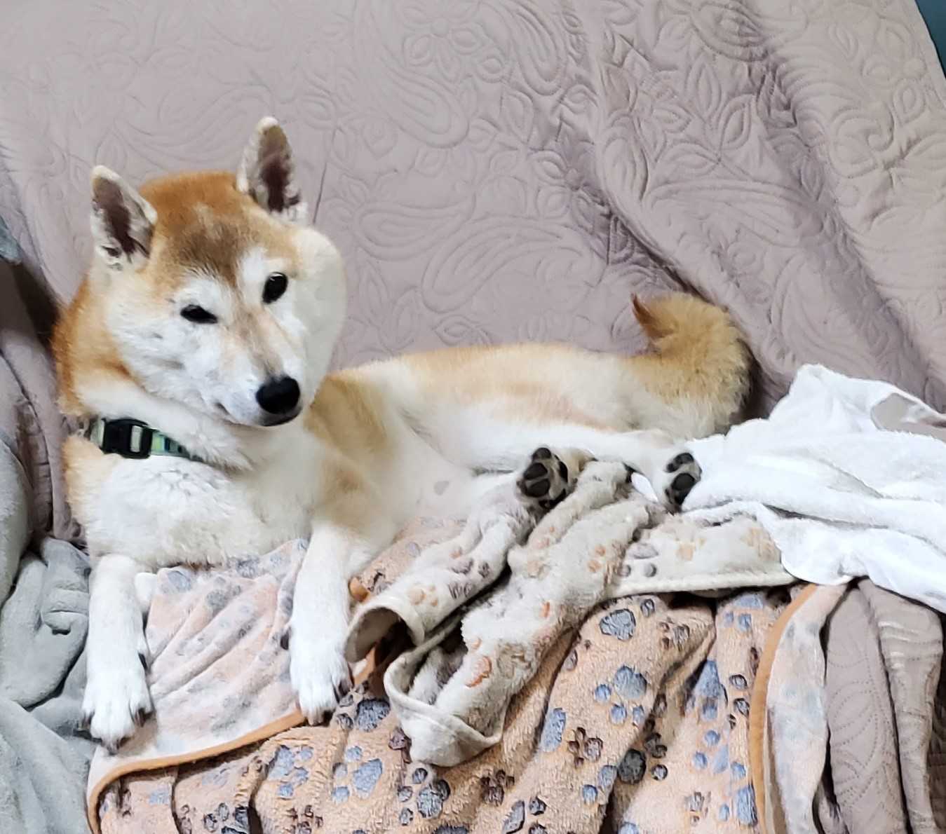 今朝の温度は4度、6時15分ごろの空の色は黒からネイビーブルーに変わってきた。もちろん懐中電灯なしでは足下が危ない(木の根とか切り株が張り出しているので)舗装した道もあるが、自然に近い道の方がコロはお気に入りのようだ。今日はコロの受診日なので、動物病院に連れていくが病院行きには抵抗がなくて、さっさと車に乗る。今回10日間の間をあけての受診になったが耳も落ち着いているので、10日間隔での受診を続けることになった。一時期よりは落ち着いて受診するようになっている。家に帰ってからルーティンの家事を進める。午前中で家事を片付けたので。昼寝は1時間強した(昨日の夜は相当風が強くて、眠れなかった)ピアノの練習をしたが、昨日相当練習したおかげで、大分今まで迷っていたところがスムーズに弾けるようになっていた。今日は病院に行きました。できるだけ頑張りました。先生やお母さんから頑張ったねといわれてちょっとうれしかったです。byコロ