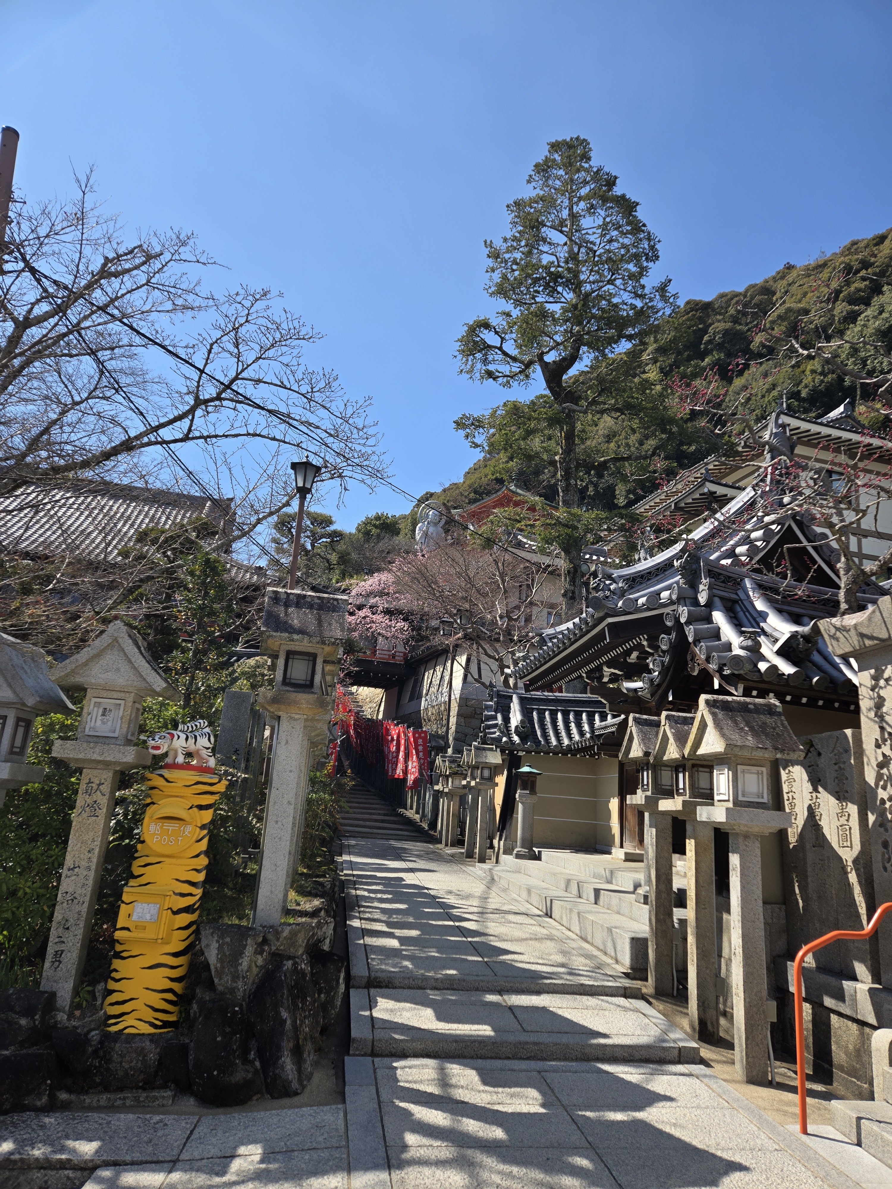 信貴山口駅から信貴山ケーブルに乗って高安山駅へ。 そこから縦走道を歩いて信貴山朝護孫子寺まで行きました。ゆっくり歩いて45分くらいでお寺に到着。 ![]() ![]() 途中ウグイスが鳴いていましたが、 まだ『ホーホケキョ』と綺麗に鳴けていない🤣。 もうちょっと練習が必要な鶯がいました😆 倒木で通りにくいところが数ヶ所ありました。 空が青くて風がそよいで森の中を歩くのはすごく 気持ち良い❗ ![]() 朝護孫子寺に到着。 ![]() トラのポストと狛犬ではなく狛虎!?。 ![]() ![]() 信貴山観光ホテルで温泉に入って 湯上がりビール🍻 ![]() ![]() ![]() 信貴山名物トラまんじゅうと共に。 ![]() 帰りは近鉄バスに乗って王寺駅に出て 生駒駅の『さわや』でご飯食べて帰りました❗ 王寺まで行かなくても信貴山下駅で降りた方が生駒に近かった😅。 ![]() チキン南蛮定食。美味しい😆 ![]() 久しぶりの山歩き、楽しかったです🎵 お気に入りの記事を「いいね!」で応援しよう