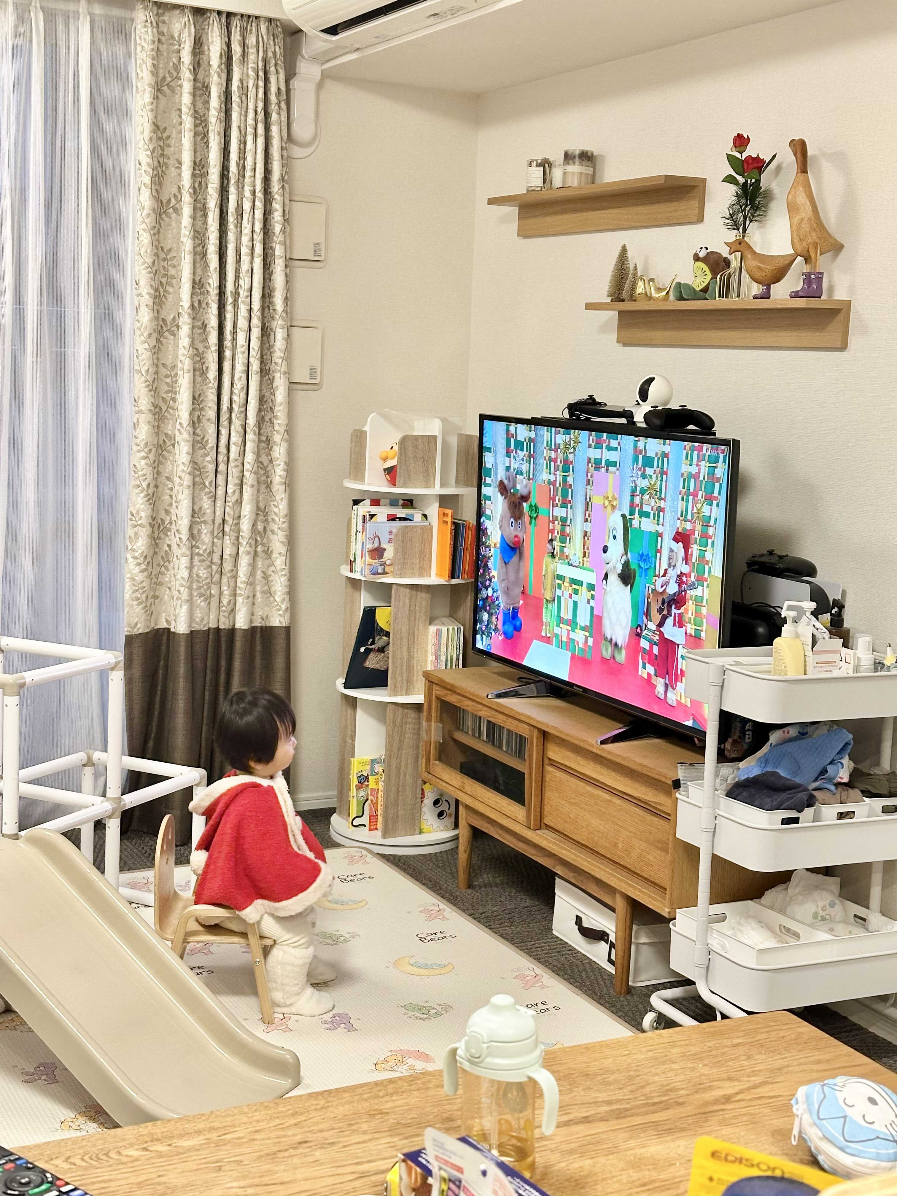 家族写真より!最近の瑛ちゃん。「みてね」で届きます。テレビを大人しく見てる!内容…