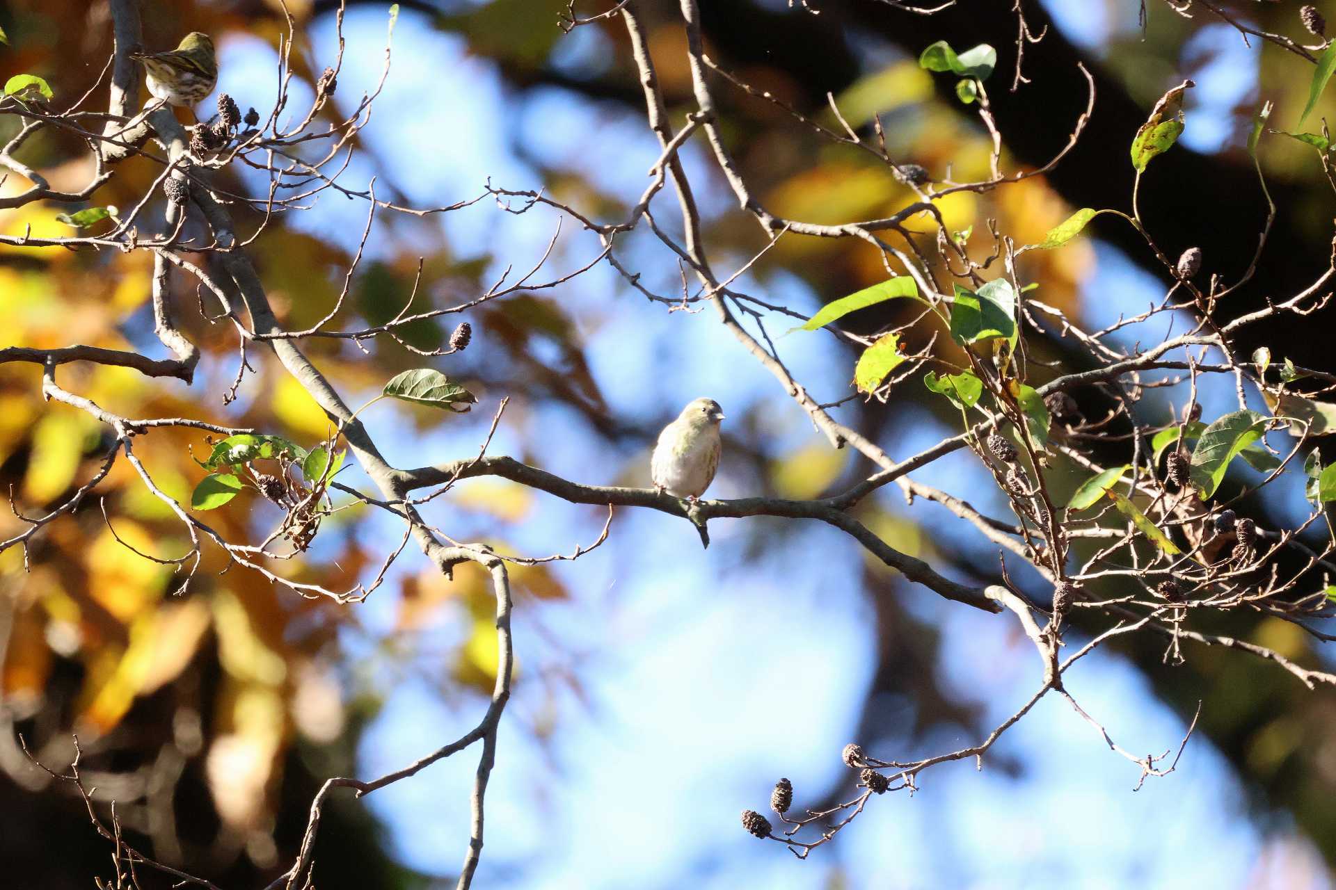 いきなり飛んできました。 光が悪いですが、「マヒワ」。さっと来て、さっと、飛び去って行きました。