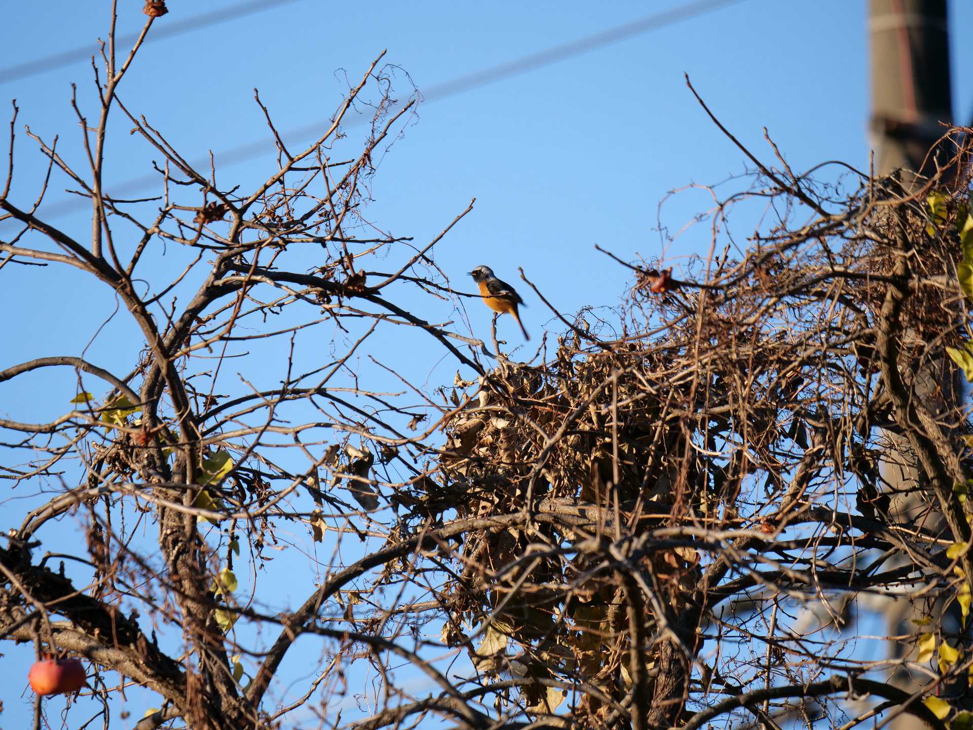 早いもんで、今日で、今年も終わりですね。たまたま、見られる範囲で、後をつけてみました。 撮るもん無いんで、お散歩中?の「ジョウビタキ」でも。この後、藪の中に潜っちゃいました。