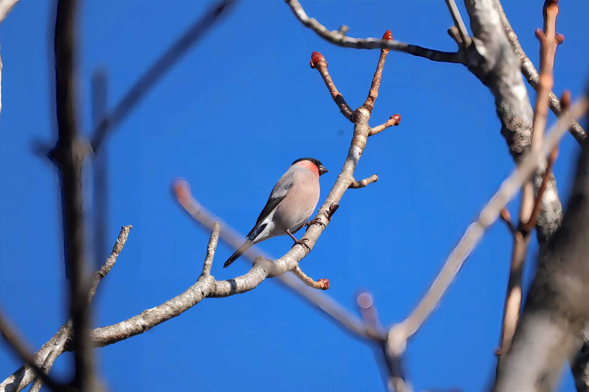 見つからないと思ったら、こんなトコに隠れて・・・ 飛んできた「ウソ♂」。この後、飛び去ってしまいましたが、飛んできた場所をよく見ると・・・ こんなトコに、静かに隠れていましたよ。