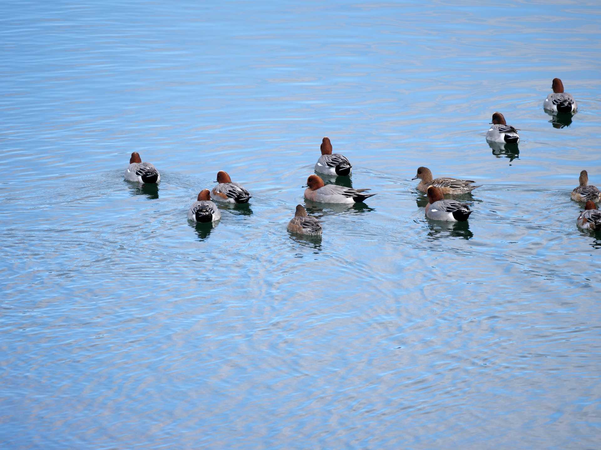 続きです。 逃げる、「ヒドリガモ」。 「コガモ」。 ちょっと遠かった「カイツブリ」。 よく見りゃ、群れでいた「オカヨシガモ」。