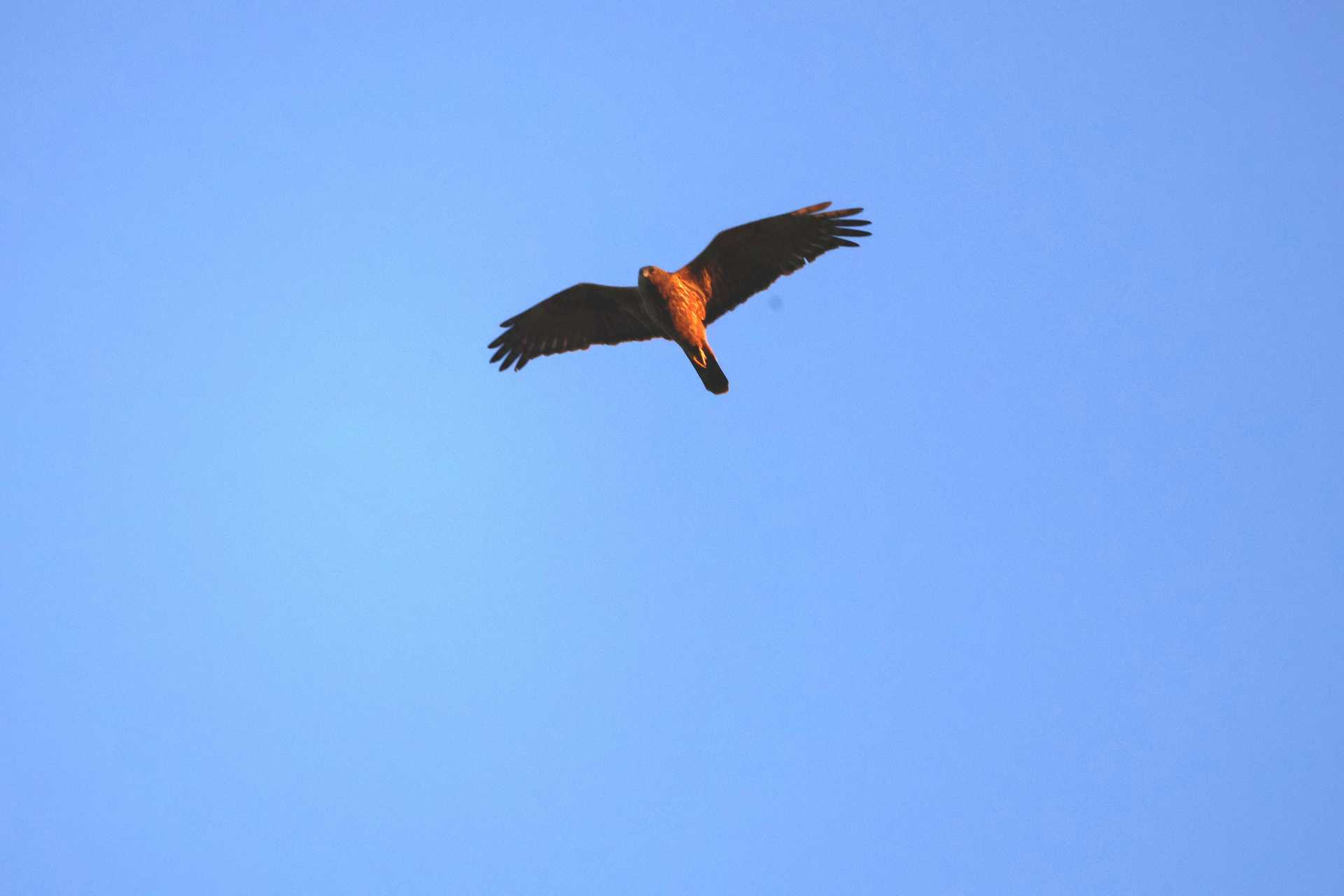 日没直後です。 もう、帰ろうと思ったら、10分くらいの間に、「チュウヒ」が、続々飛んでくれましたよ。