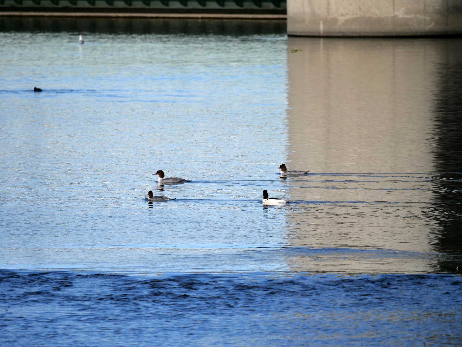 続いて撮ったのは・・・ 「カワアイサ」です。 逆光側だったので、♂は、色が出ないですねぇ・・・ 遠くばかりいる、撮りにくい野鳥です。