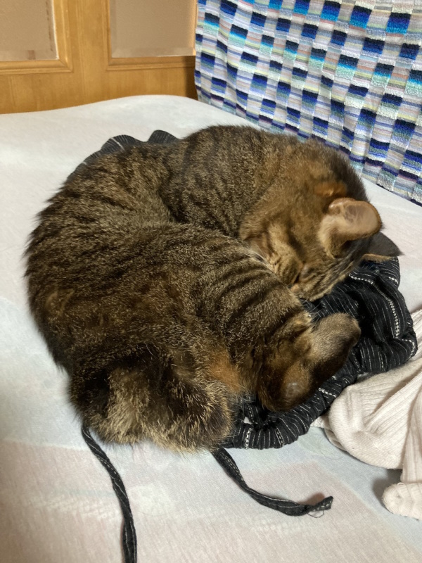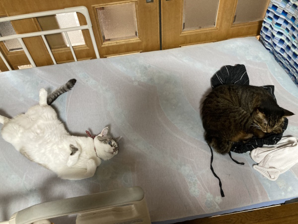 お父さんの服、温めとくニャ ![]() しばらくするとぐうちゃんに交代。 お父さんの服、大人気 ![]()